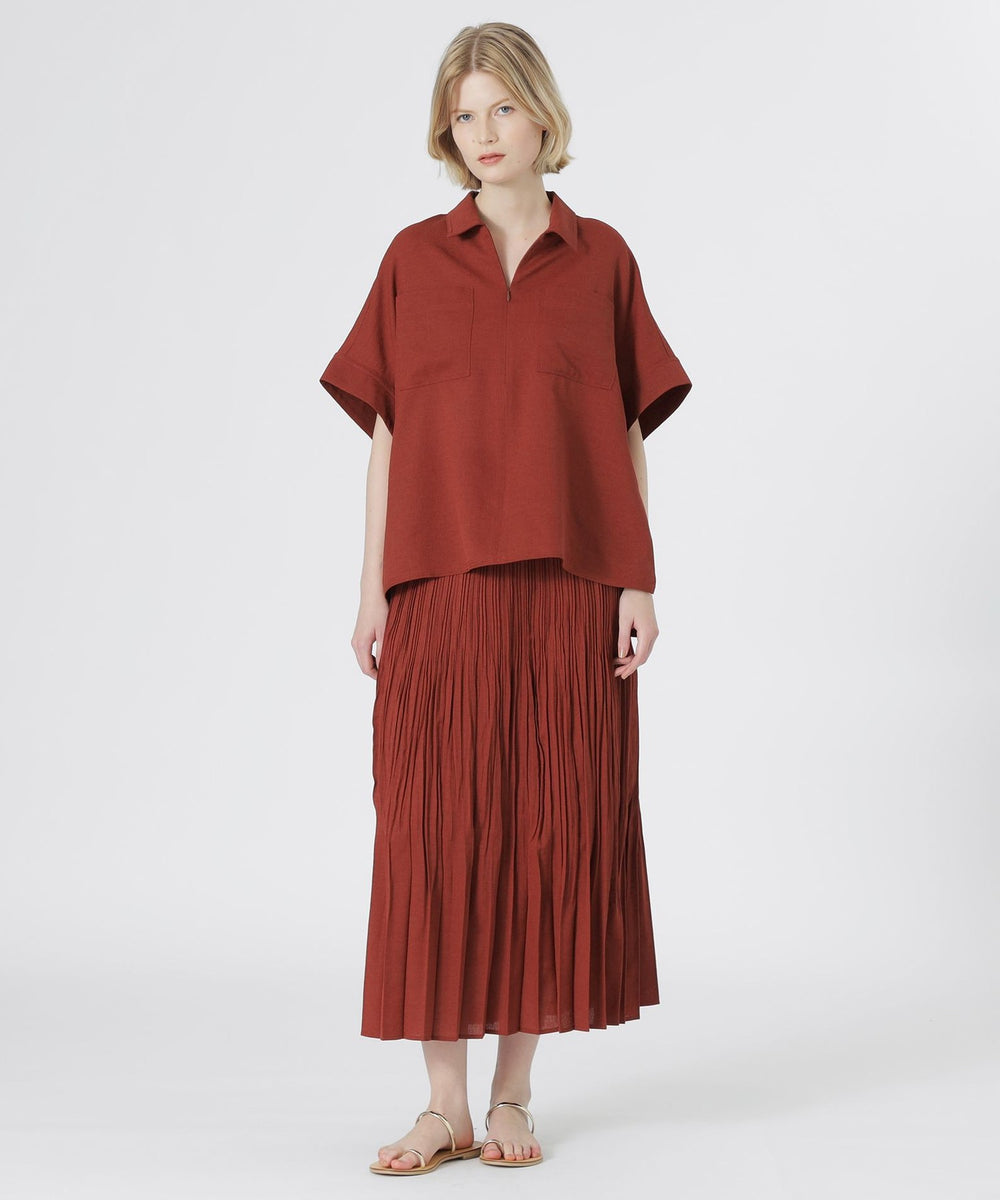 同素材のエージングドビーギャザースカート(品番:62S03560)を合わせたセットアップスタイルも可能。
