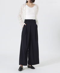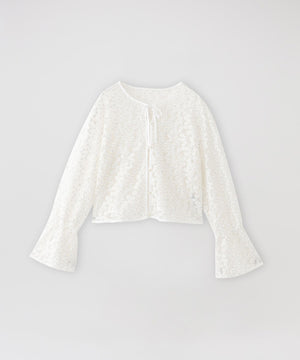前後どちらでも着用可能な2WAY仕様で、ボタンを開けて羽織りとして、ボタンとリボンを背中にアクセントにしたプルオーバーブラウスとしても楽しめます。