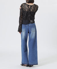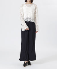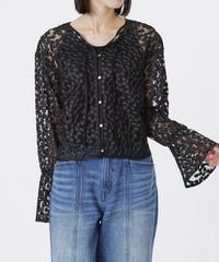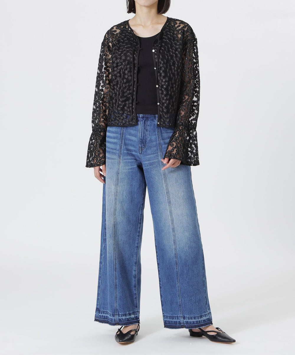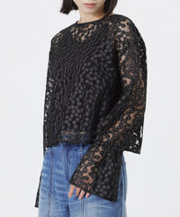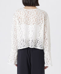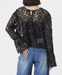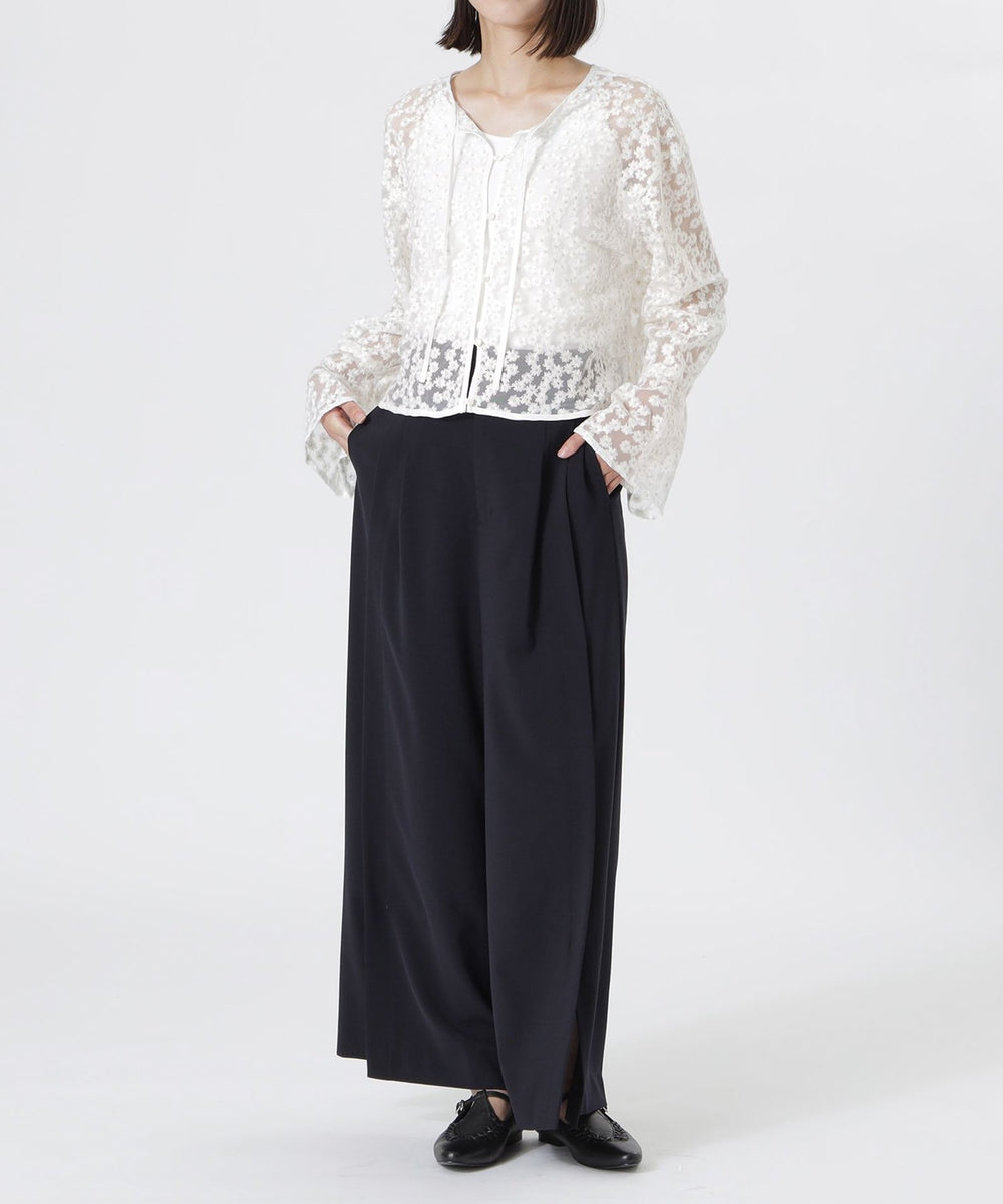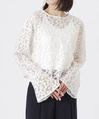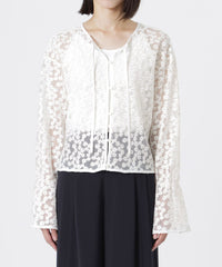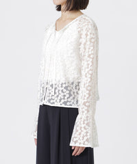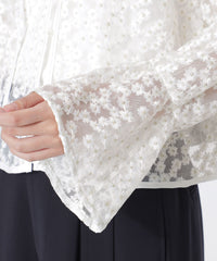 繊細な透け感が魅力の、フラワー刺繍チュールブラウス