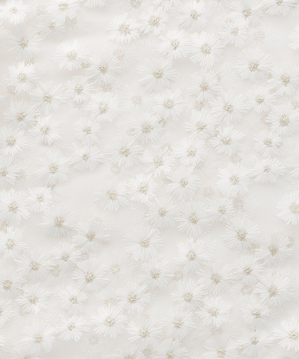 柔らかなチュールにフラワー刺繍とラメ糸刺繍をあしらった、繊細で華やかな素材。