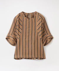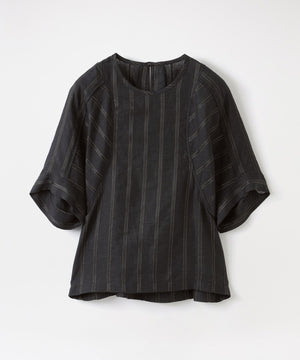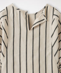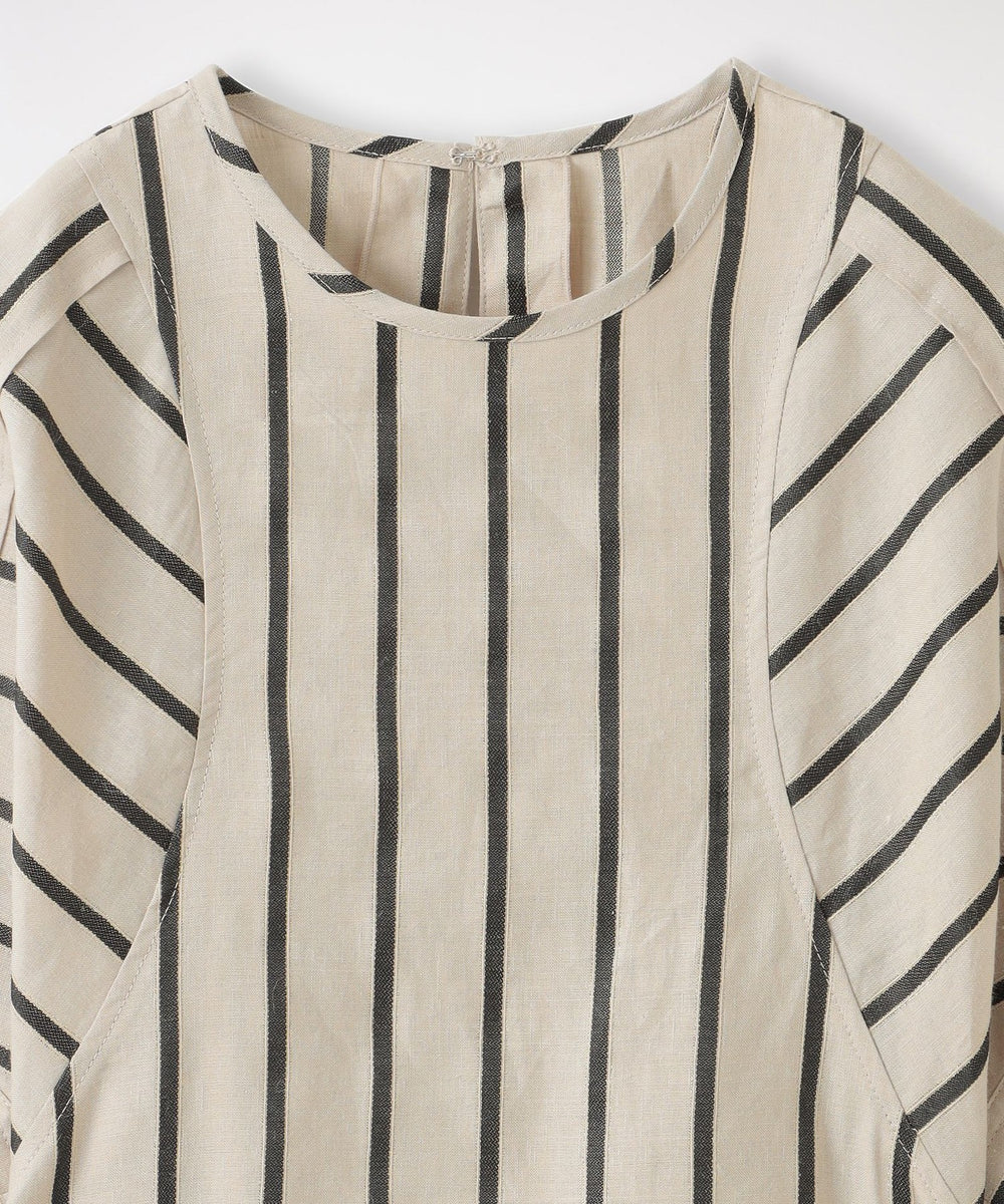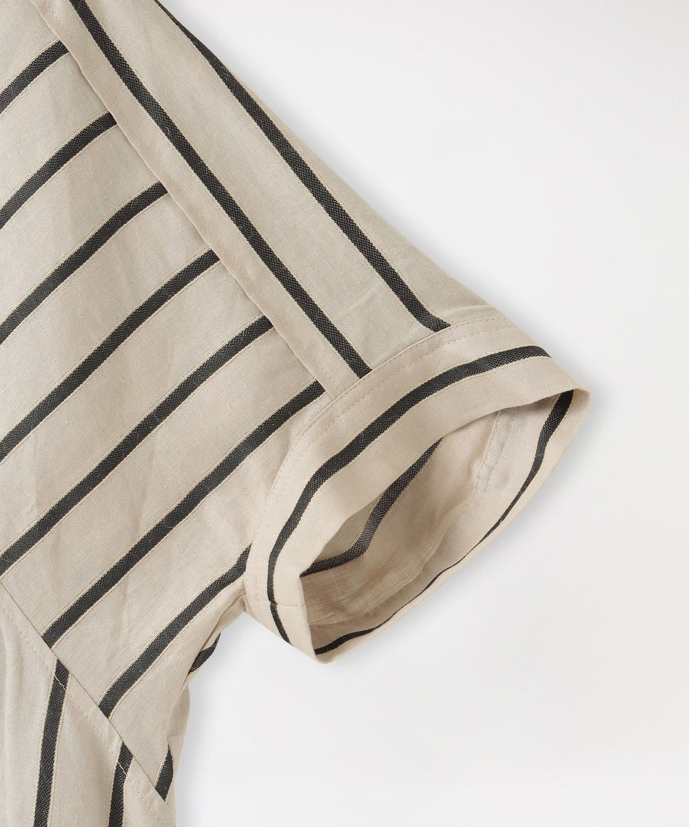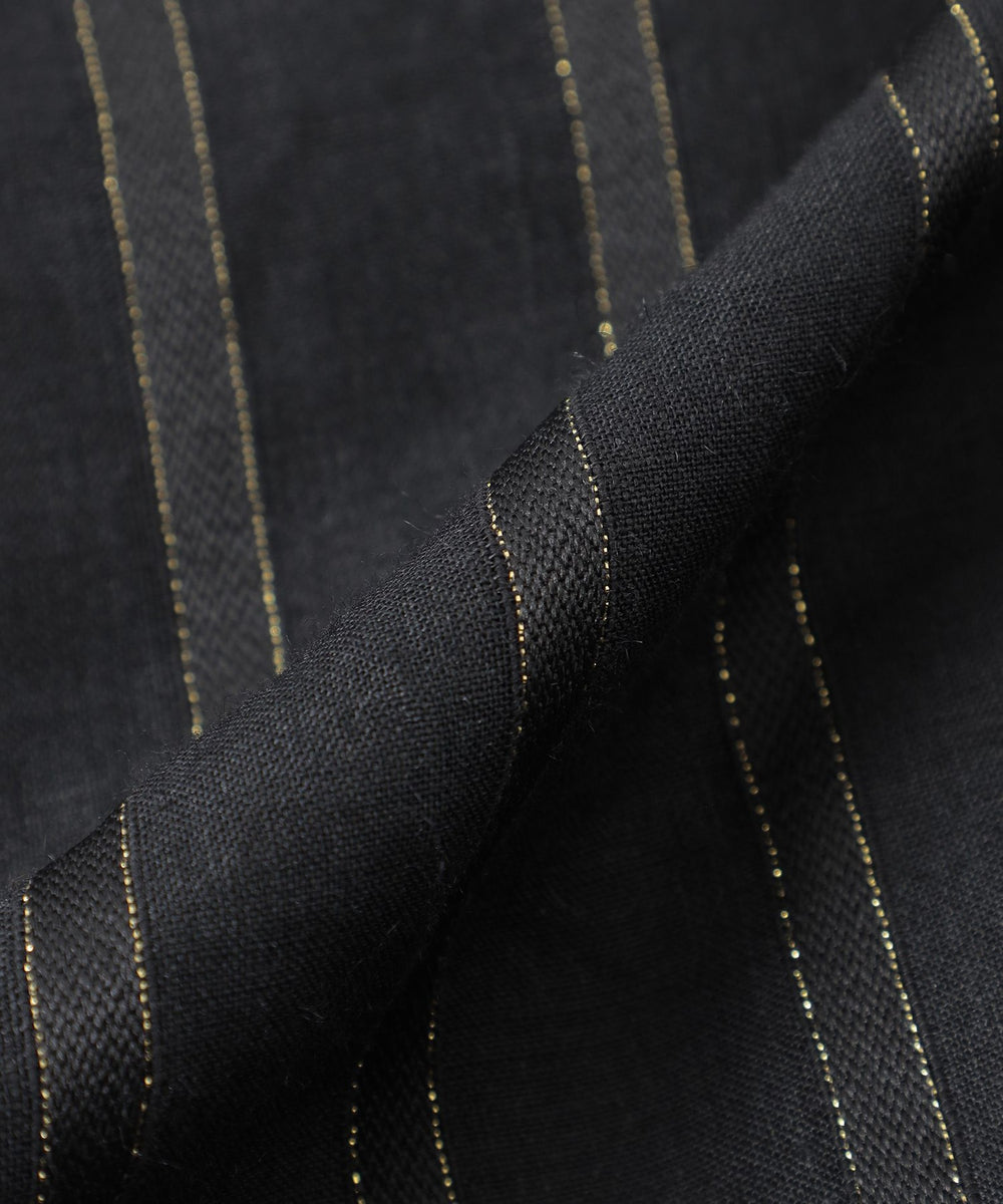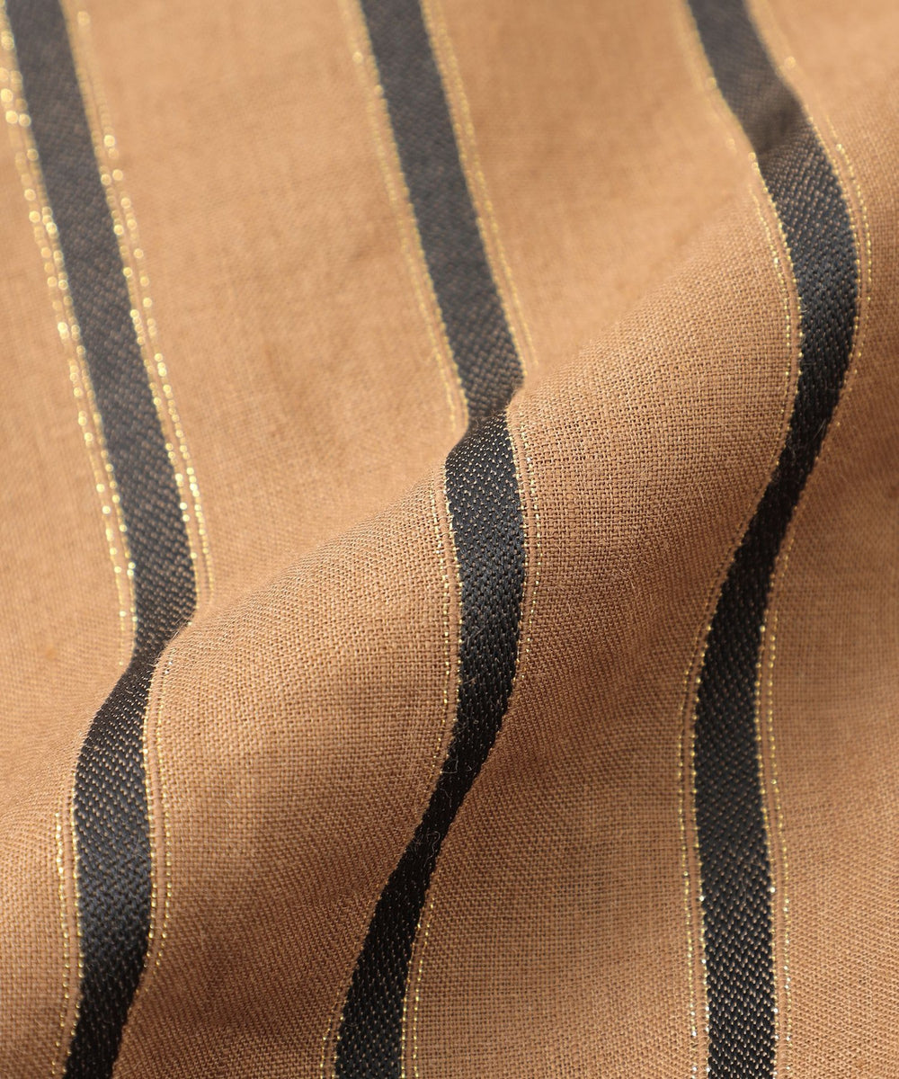 麻混素材にラメ糸を織り込んだドビーストライプ。