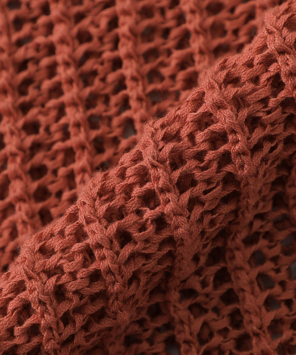 立体感のある編み地で、かつメッシュ網による透け感が涼し気な1着です。
