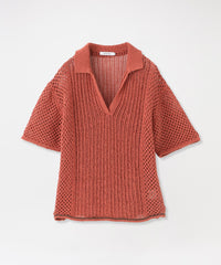 ざっくりとしたメッシュ風の編地で程よい透け感がポイントのニットポロシャツ