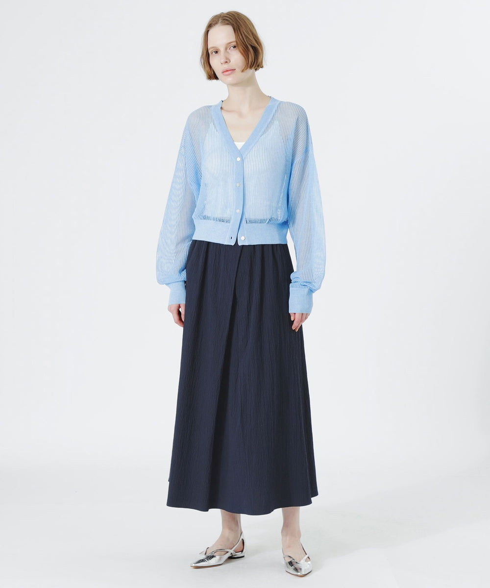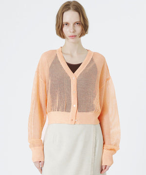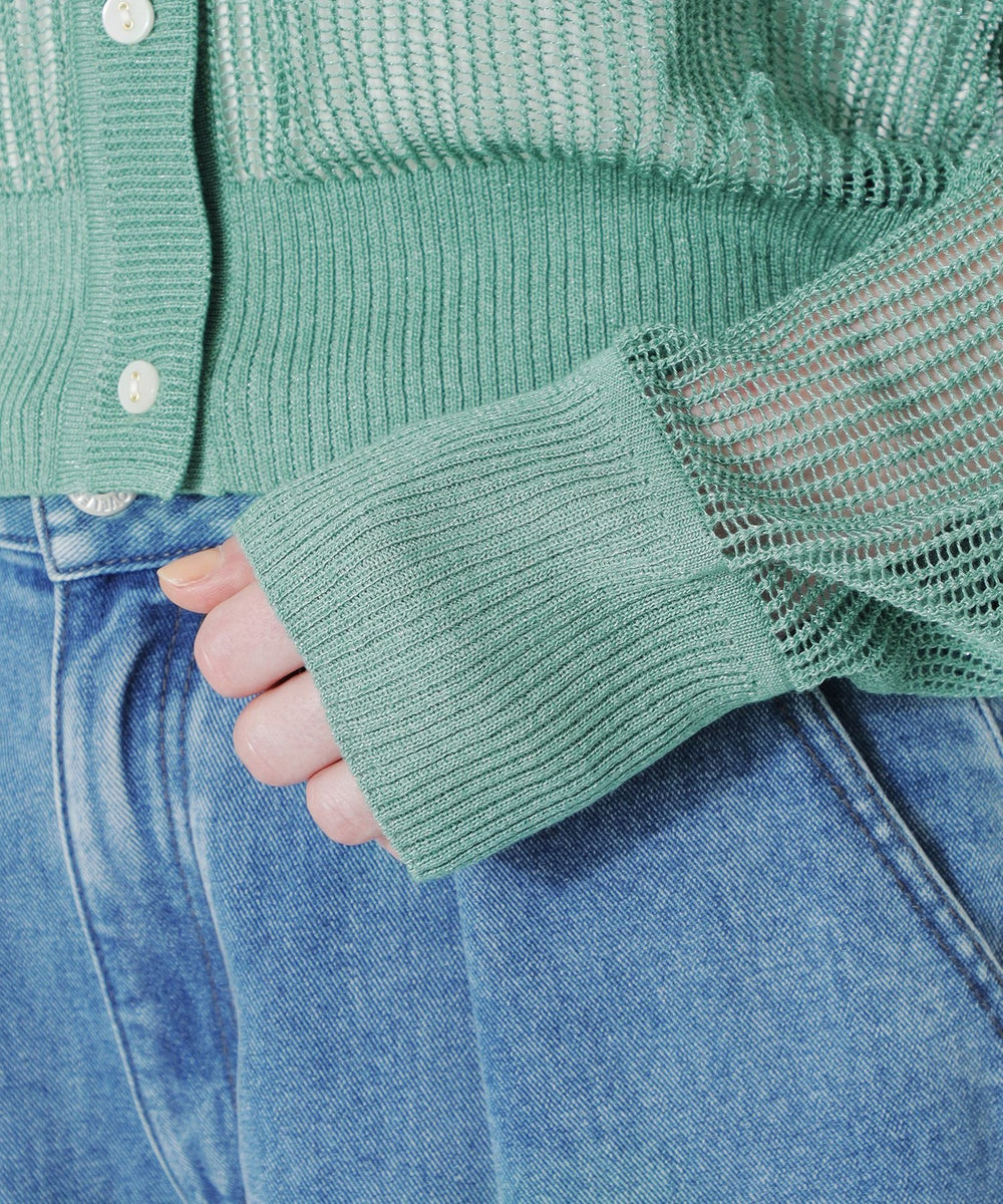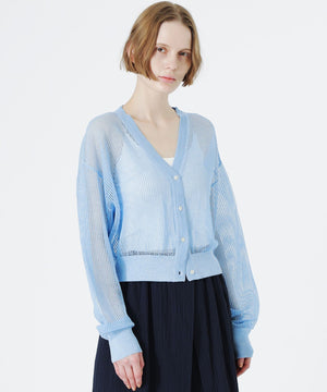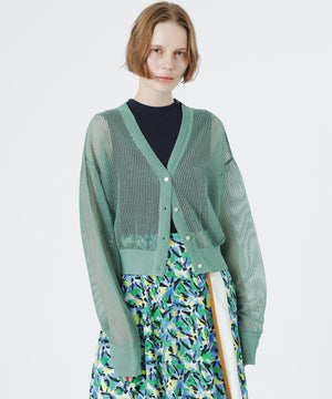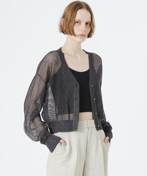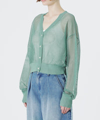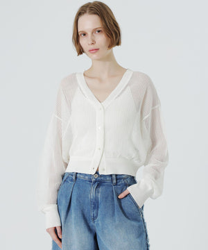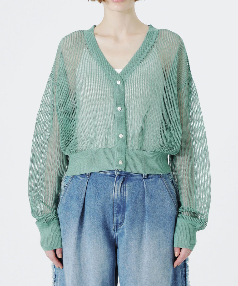 見た目も涼し気で、程よい透け感がスタイリングにアクセントを加えてくれるメッシュニットカーディガン