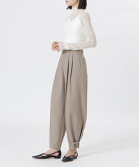 袖口には袖先にニュアンスを生む、たゆみのあるスリーブを採用し、縫い代を表に出したメロー始末が、ラインのようなアクセントに。