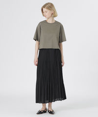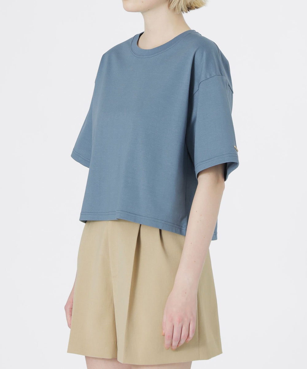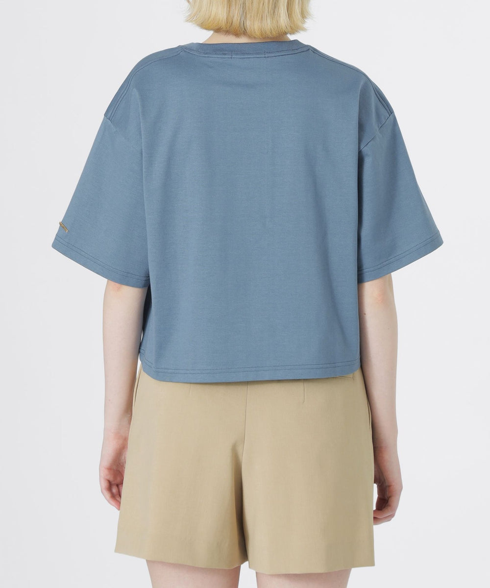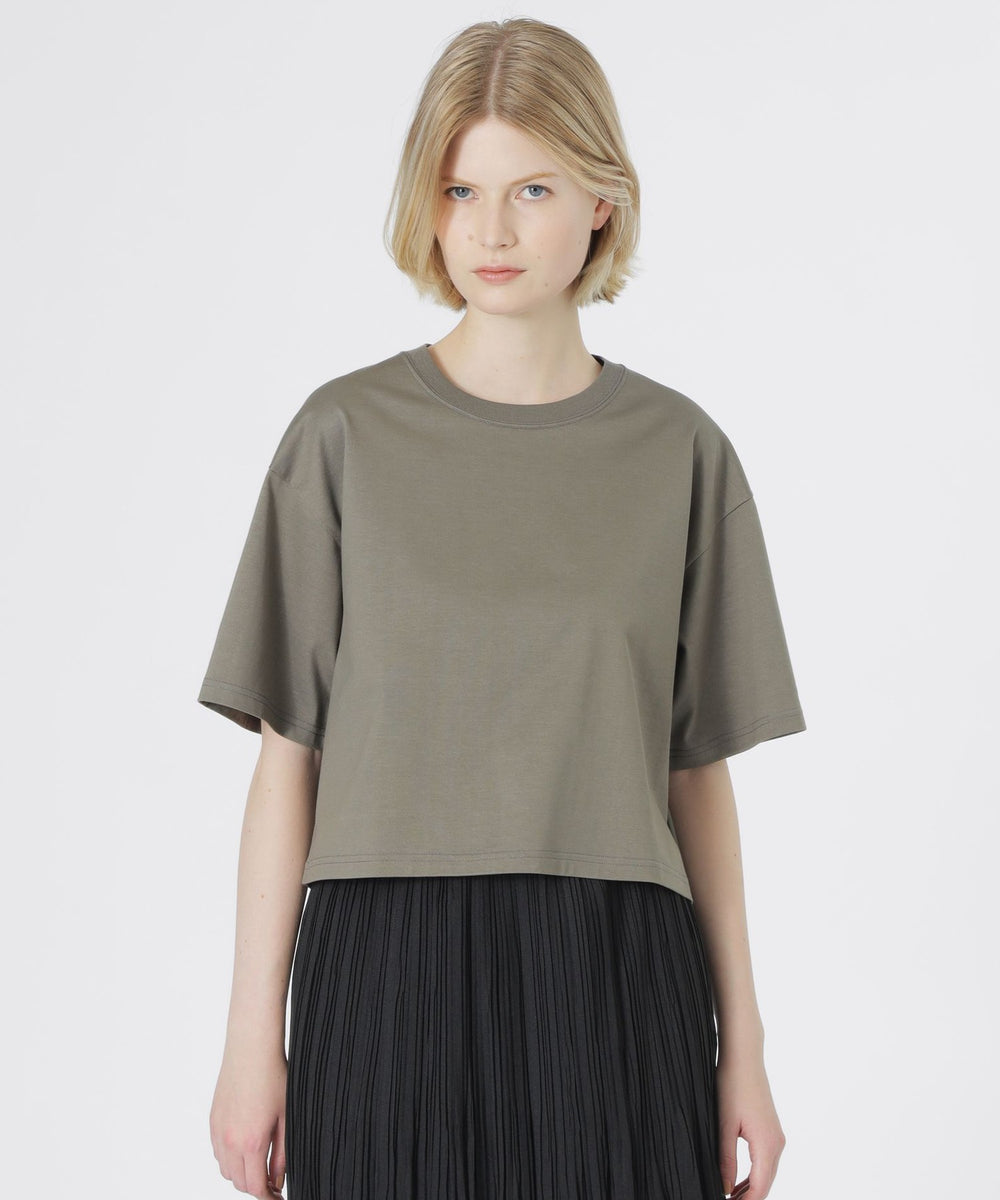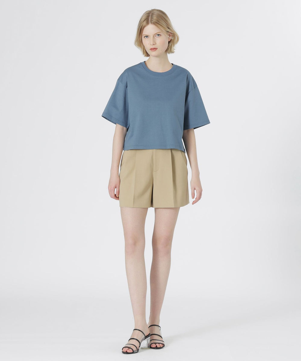 着丈はタックインぜずにスタイリングがすっきりと見えるショート丈。