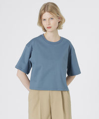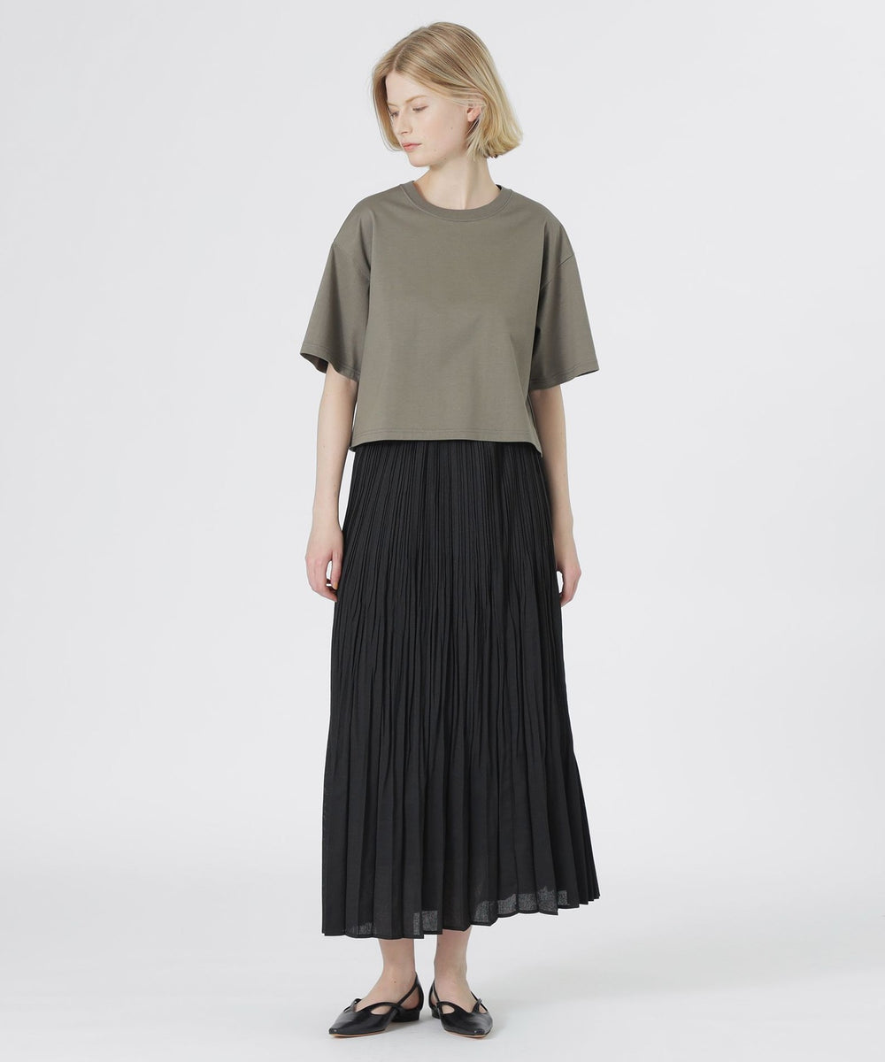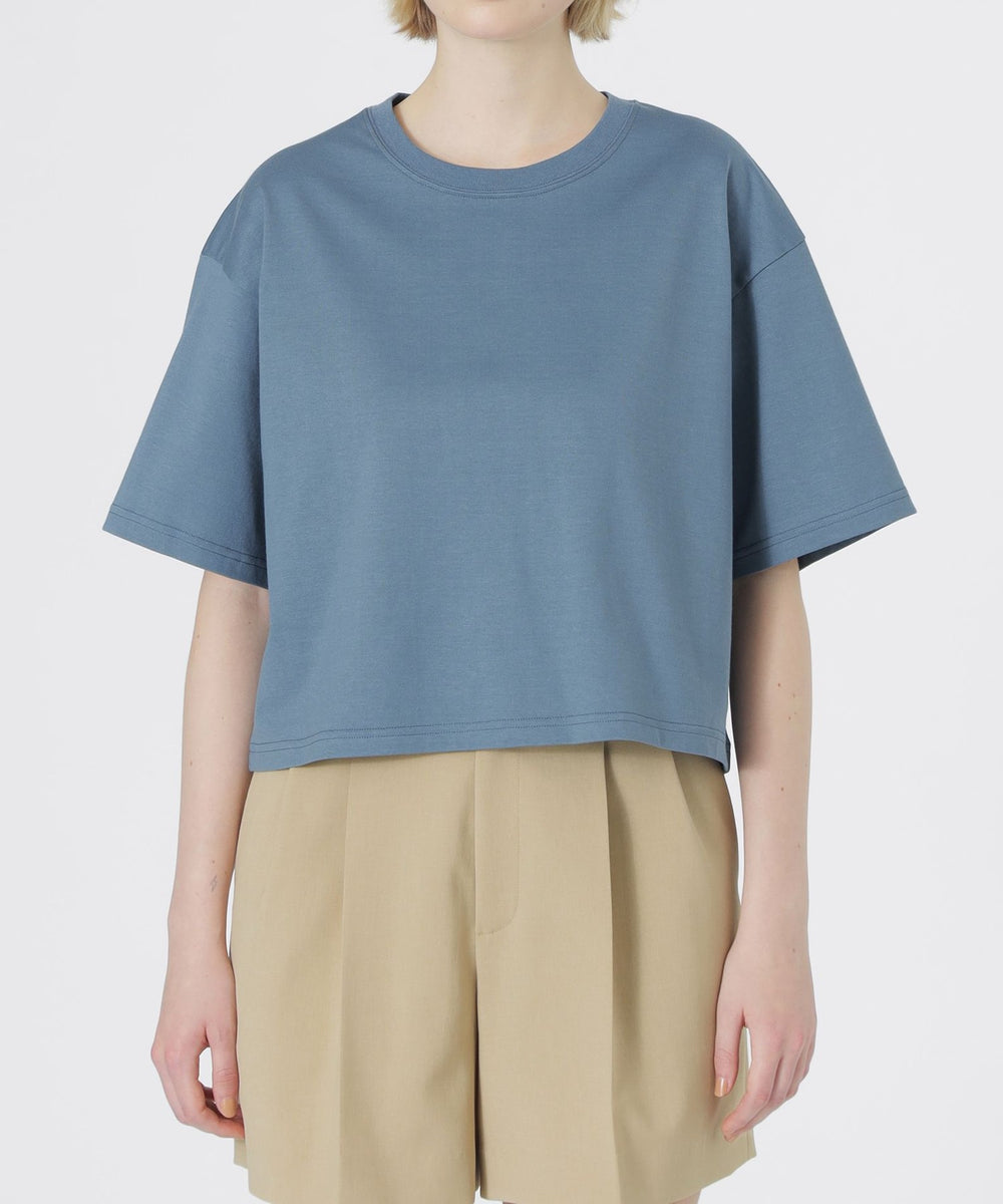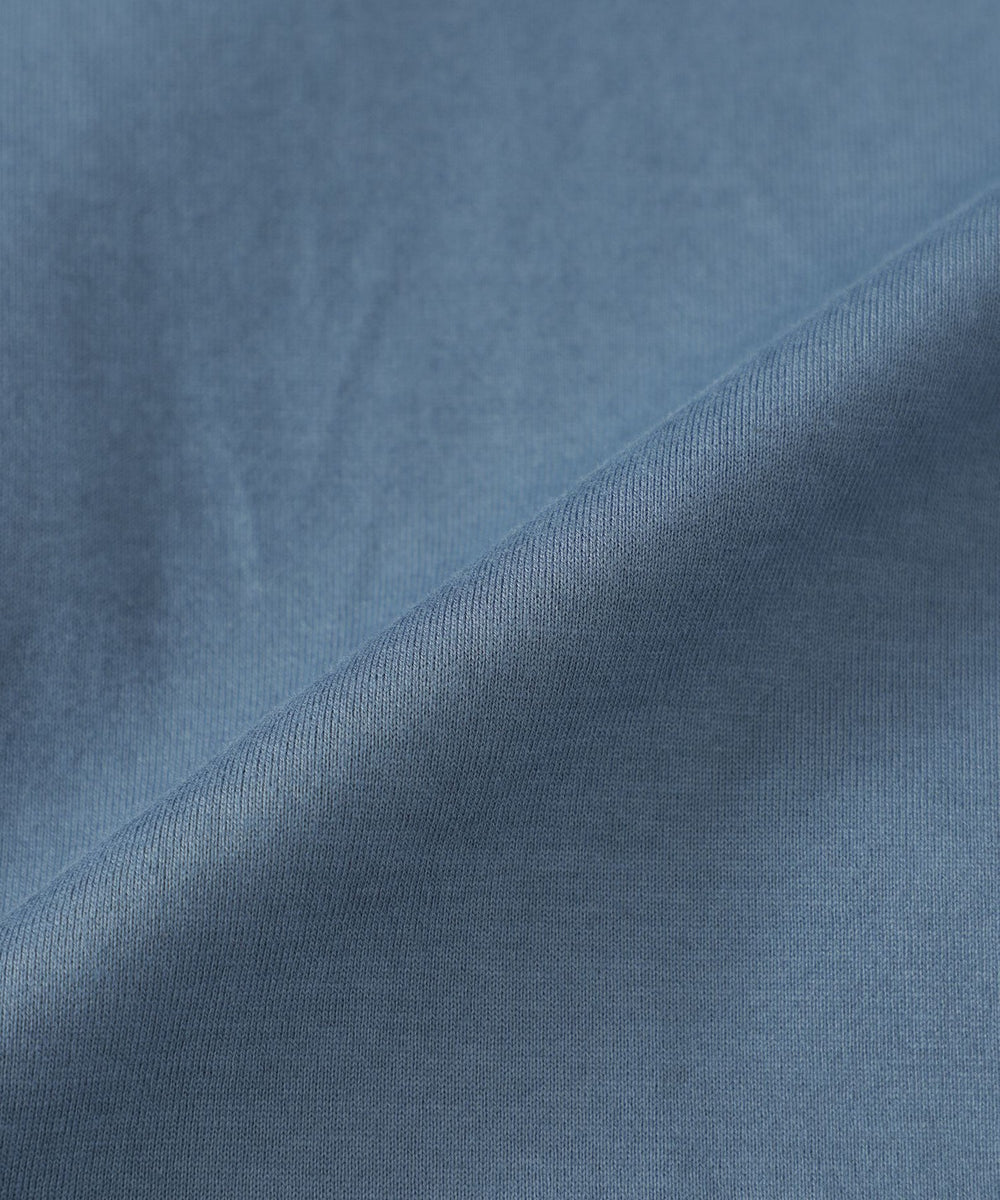 スーパーハイゲージで編み立てることで、綿のカジュアル感を残しながらもハリ・光沢感がありすっきりとした表情になっています。