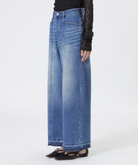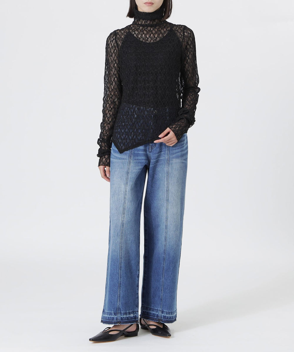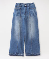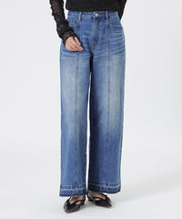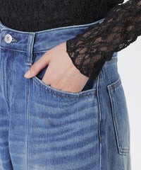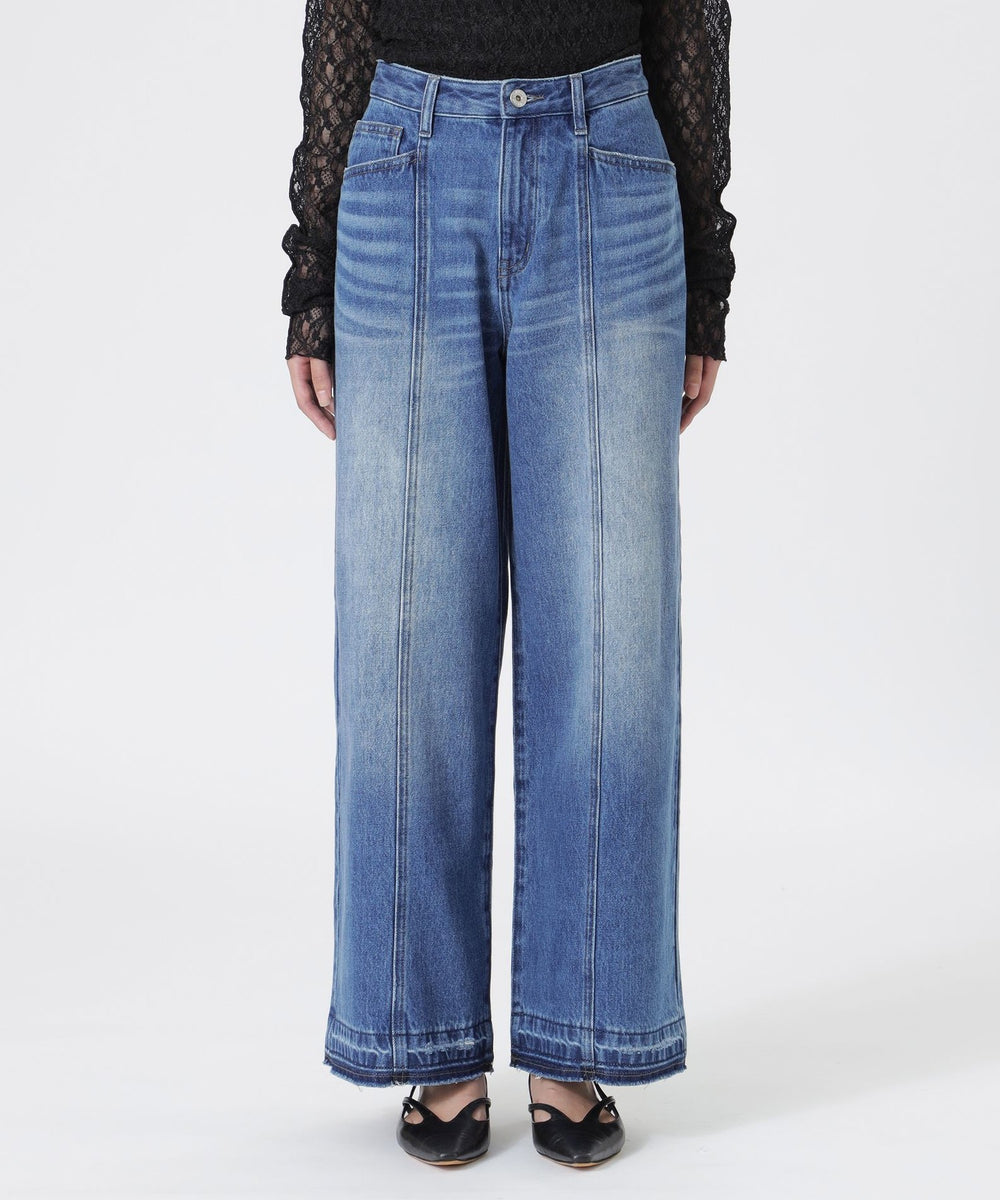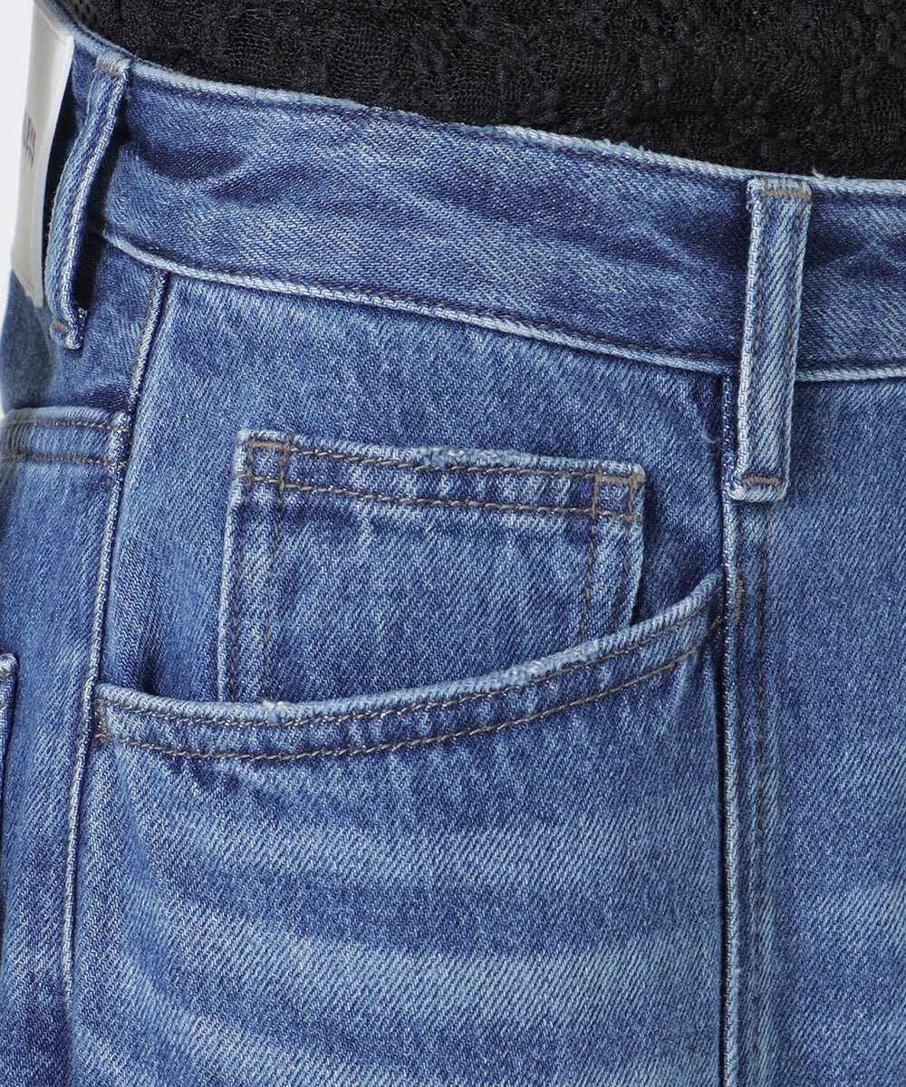 大きなデニムを再構築し、程よいルーズ感を持たせたセミローライズのストレートワイドシルエット。