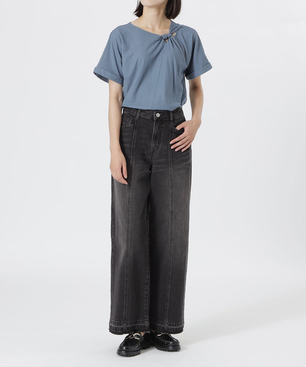 フロントの切り替えラインが特徴の、大人のルーズシルエットデニム