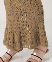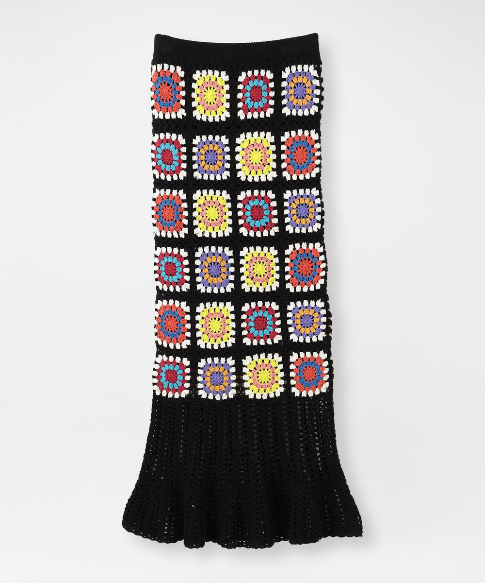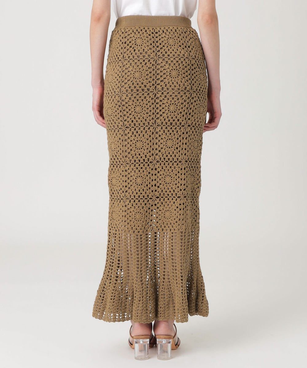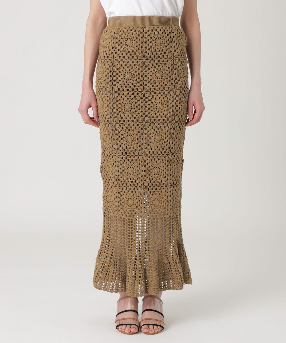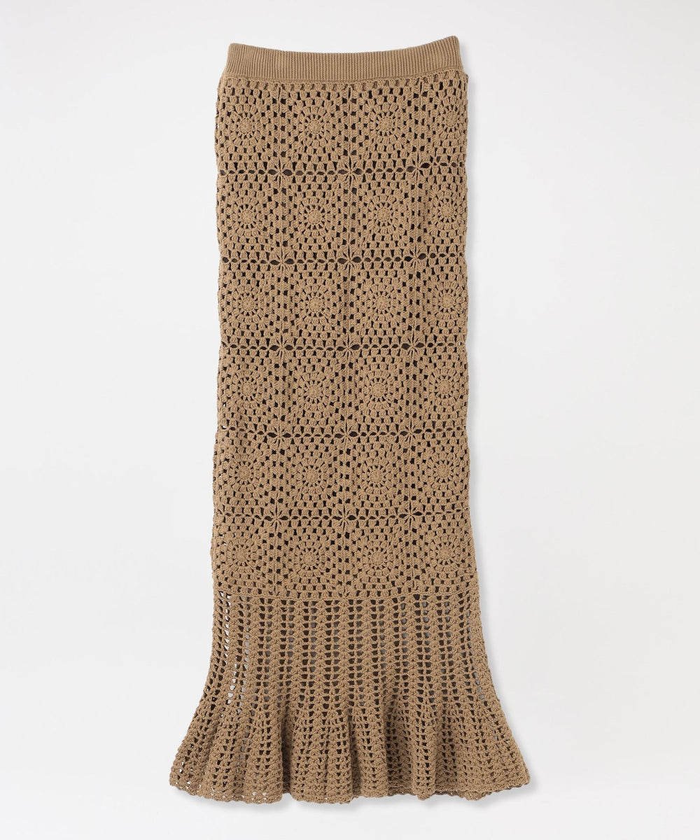 丁寧に手編みで作られたクロシェの編地がポイントのマーメイドシルエットのスカート。