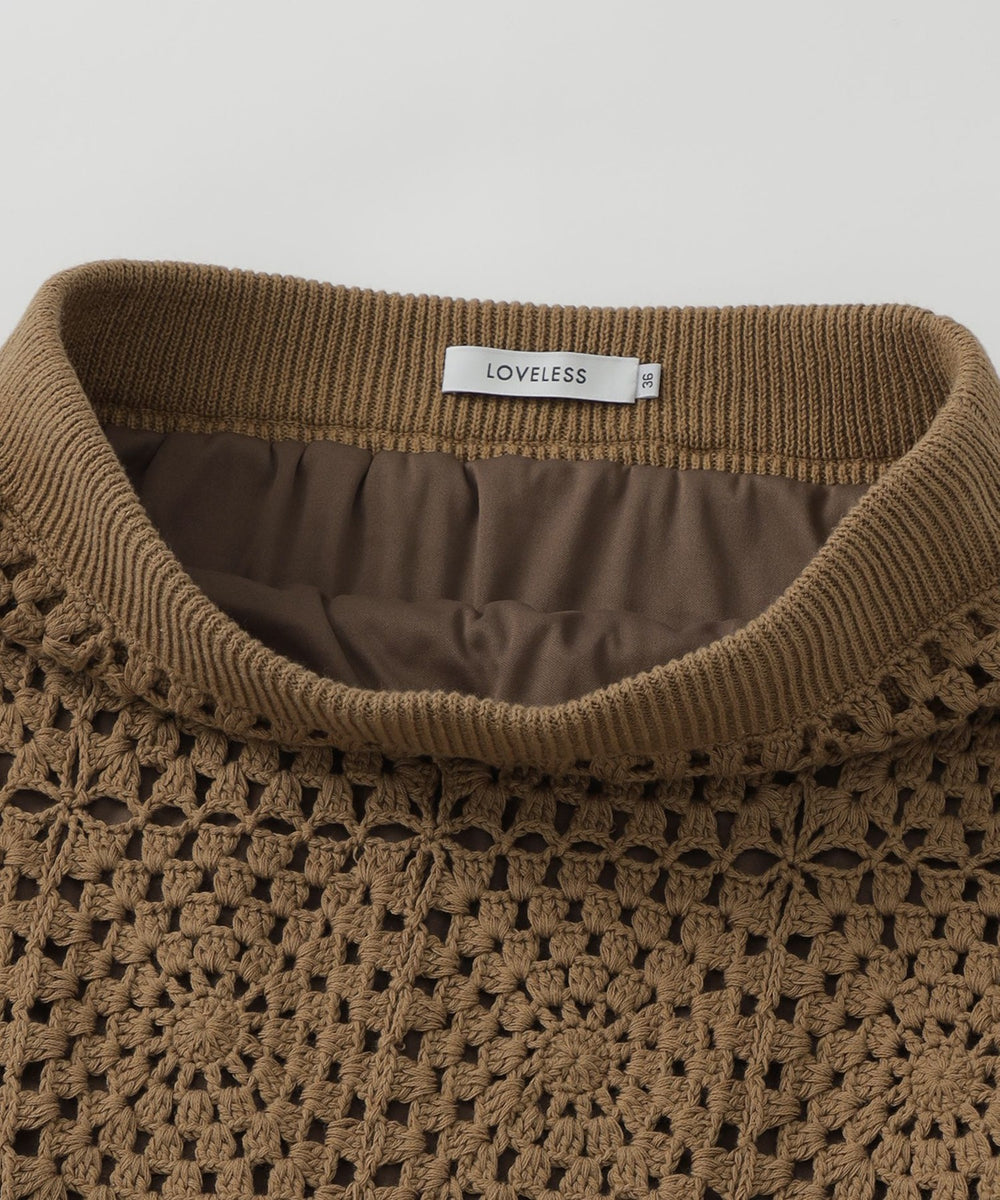 レイヤードスタイルで着映えする、レトロな雰囲気漂うクロシェ編みニットスカート