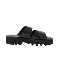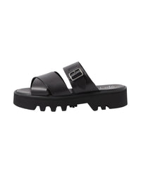 ベルトのみで構成されたシンプルなデザインのスライドサンダル。