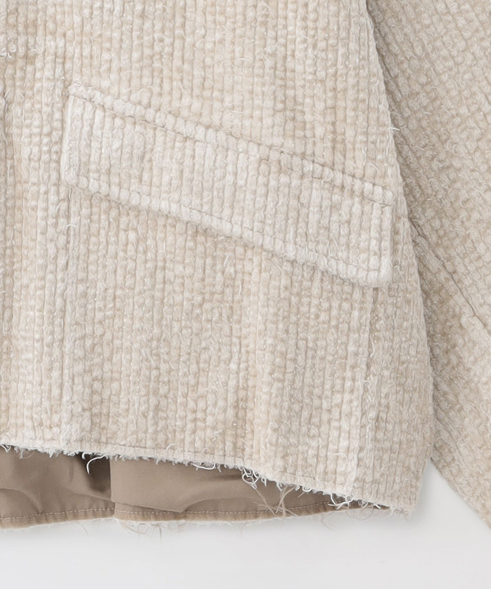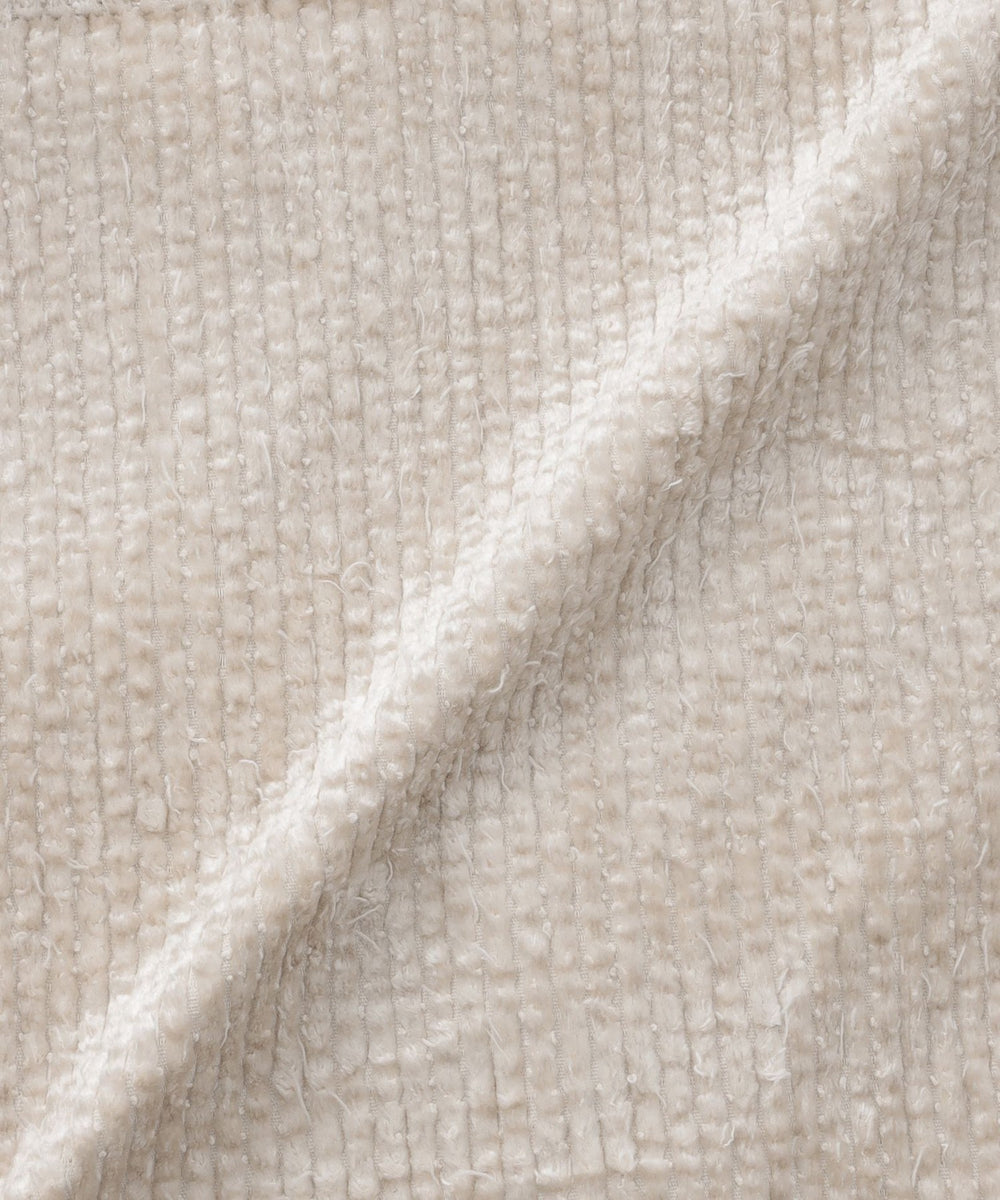 生地表面から飛び出している無数の糸とレーヨン素材の持つ光沢感が合わさることにより、奇妙な高級感が生まれました。