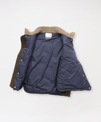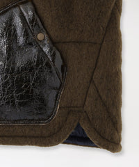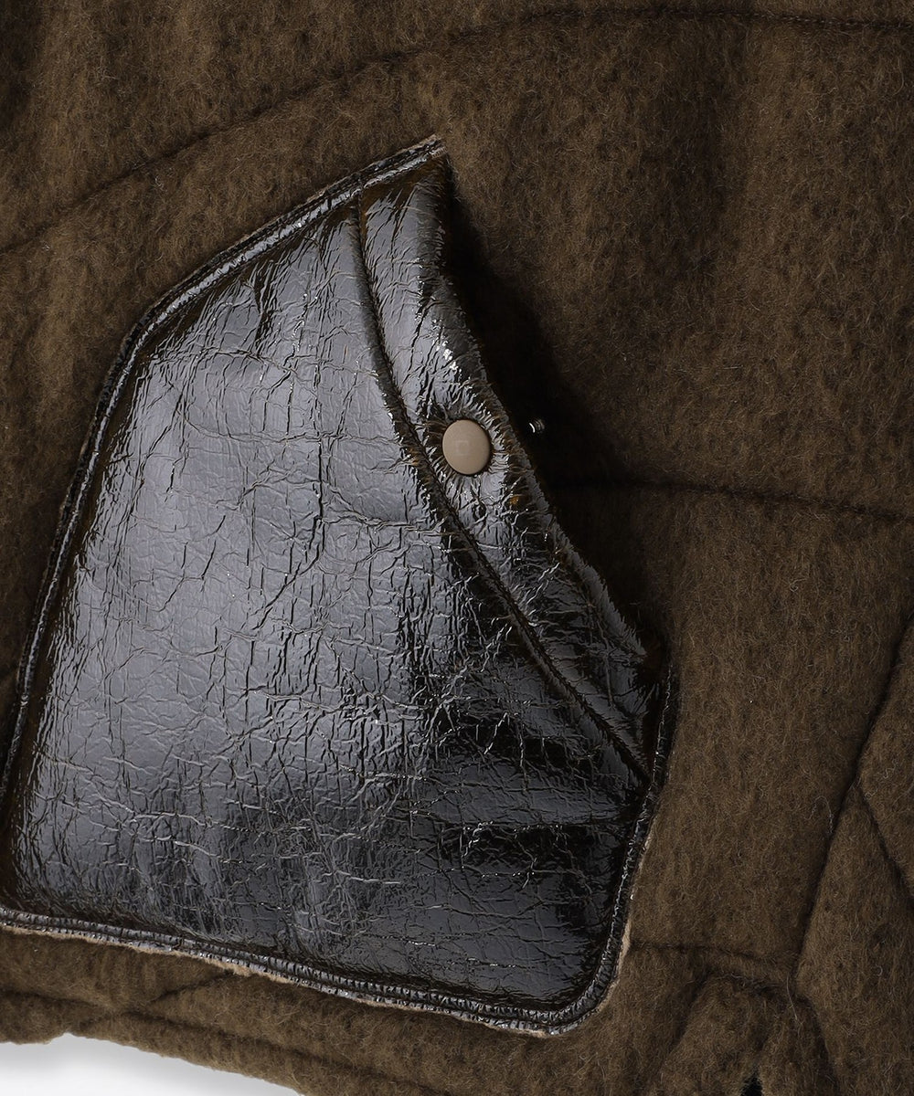 ・襟元とポケット箇所:ボア素材にラミネート加工を施し、エナメルを彷彿とさせる美しい光沢感を実現
