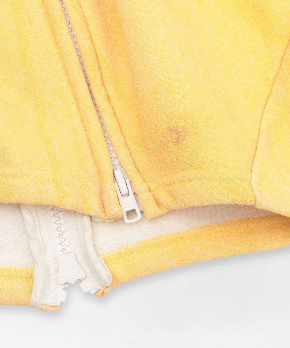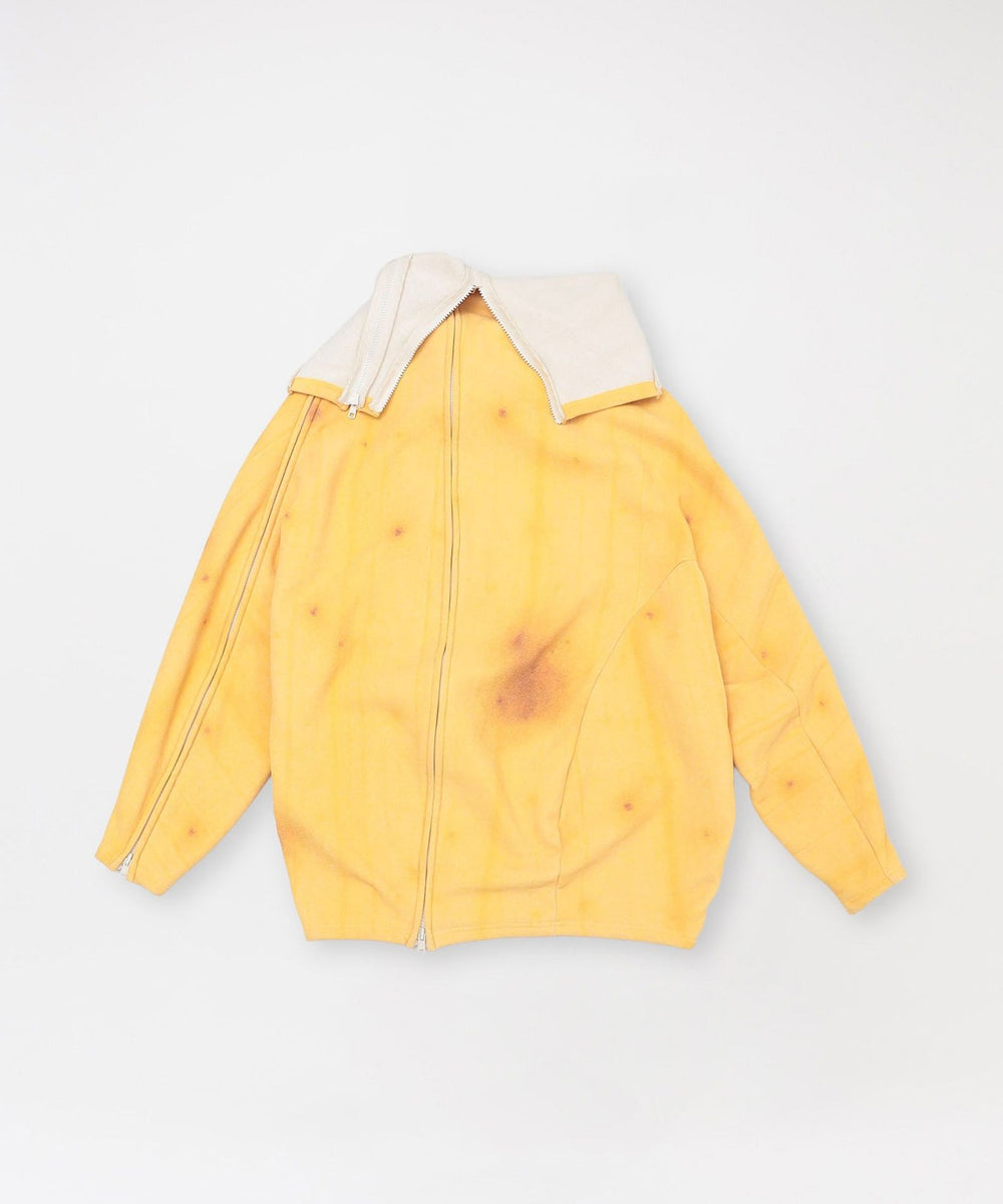 アームホールを持たない独特の構造で、ファスナーを開くとまるで皮を剥くような動作に。