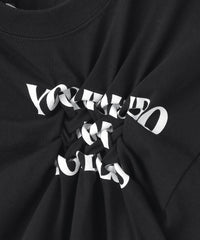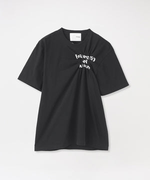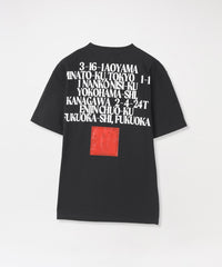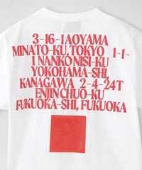 毎シーズン人気があるスモッキングされたTシャツに、アーティストのバンドTのように背面にLOVELESS各店舗のアドレスを入れ、さらにブランドが得意とするジェルプリントでLOVELESS天神店のMAPをプリントした。