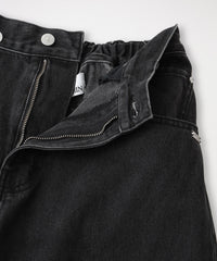 裾のたまり方や、バックにゴムがあしらわれていることでシルエットも美しいデニムです。
