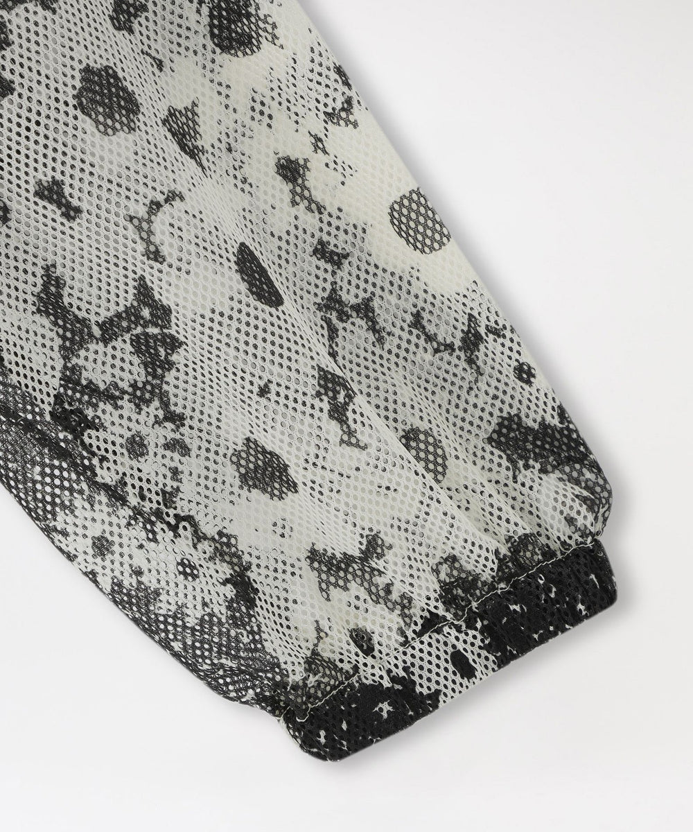 涼しげなメッシュ素材のフラワー柄が印象的な、夏も着用できるブルゾン。