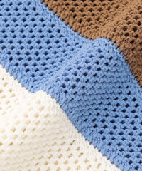 Vラインの配色が目を引く涼しげな装いのエアリーサマーニット。