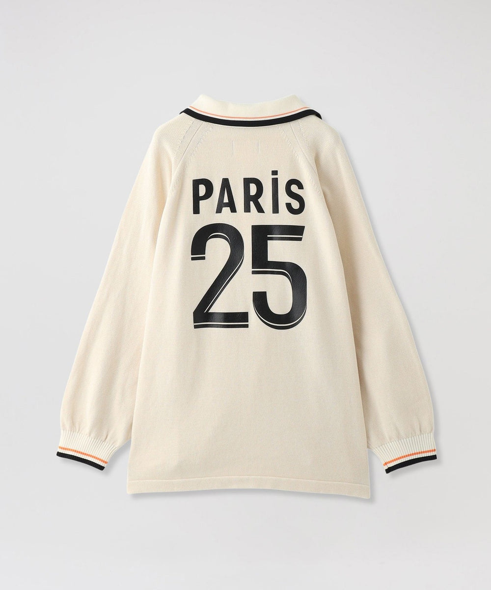 フットボールゲームシャツをオーバーサイズで表現したこのニットウェアは、Spiber社のBrewed Protein?という植物由来のバイオマスを使用して微生物発酵プロセスによって作られる人工構造タンパク質素材を使用しています。