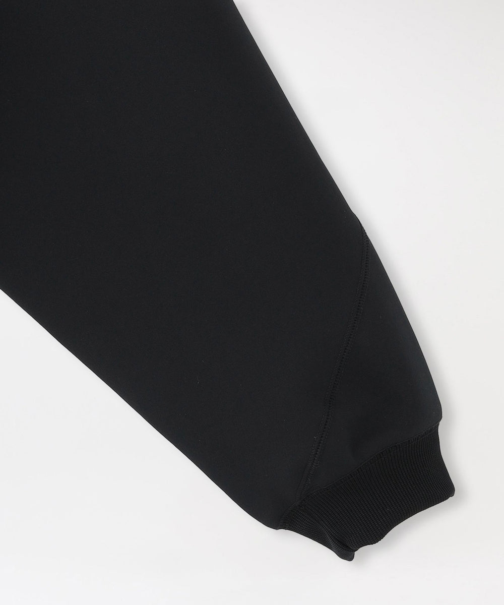 通常のスウェットと同じ着用感だが、切り替え線の位置などを緻密に計算して配置することで、まるでツイストしたように見せている。