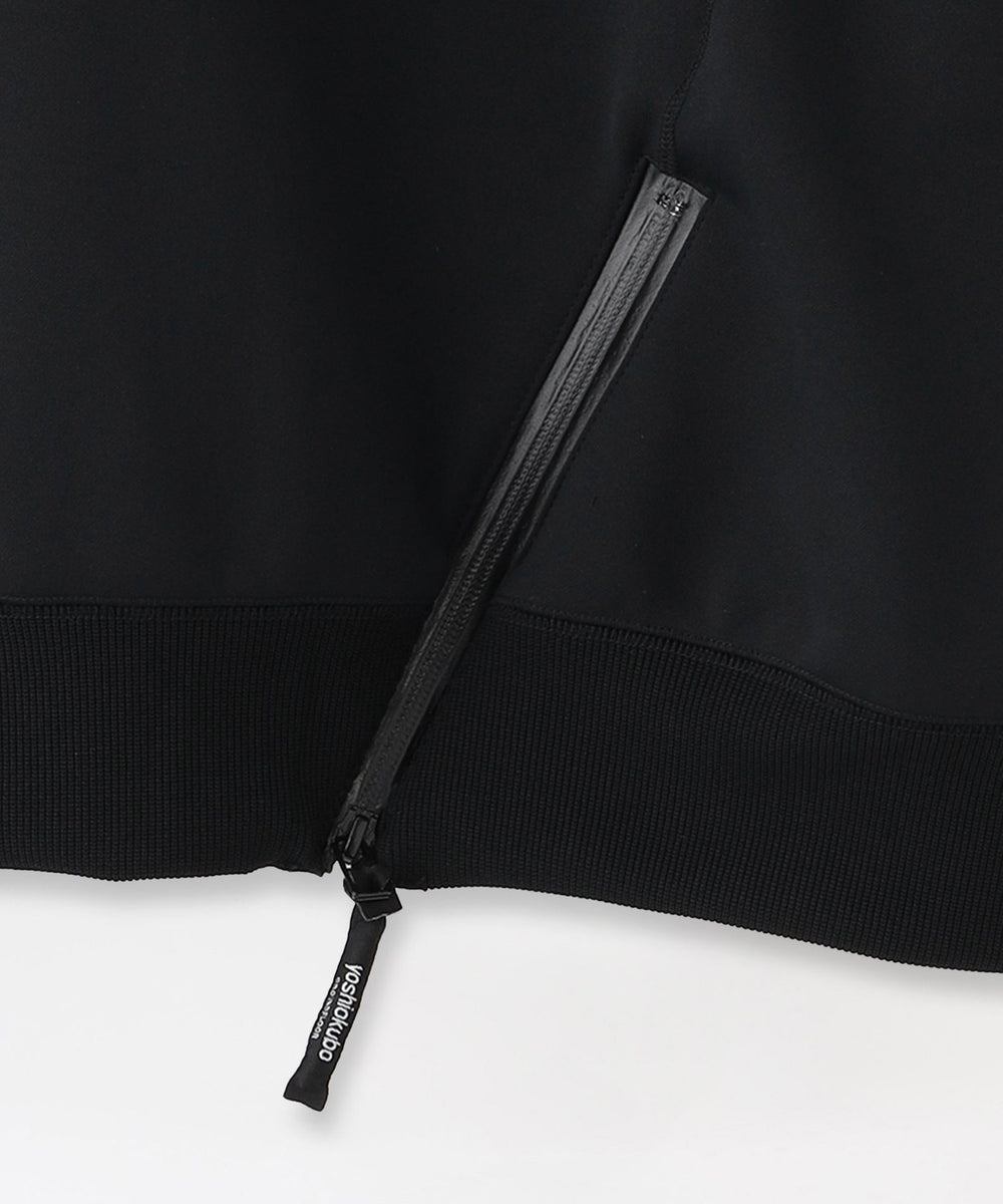 前身頃の脇線の裾には止水ファスナーでアクセントをプラスしている。