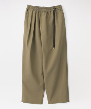 コットン/ポリエステルのギャバジン素材を使用したアシンメトリータックパンツ。