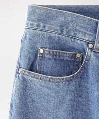 オーガニックコットンを使用したインディゴロープ染色の5Pデニムパンツ。
