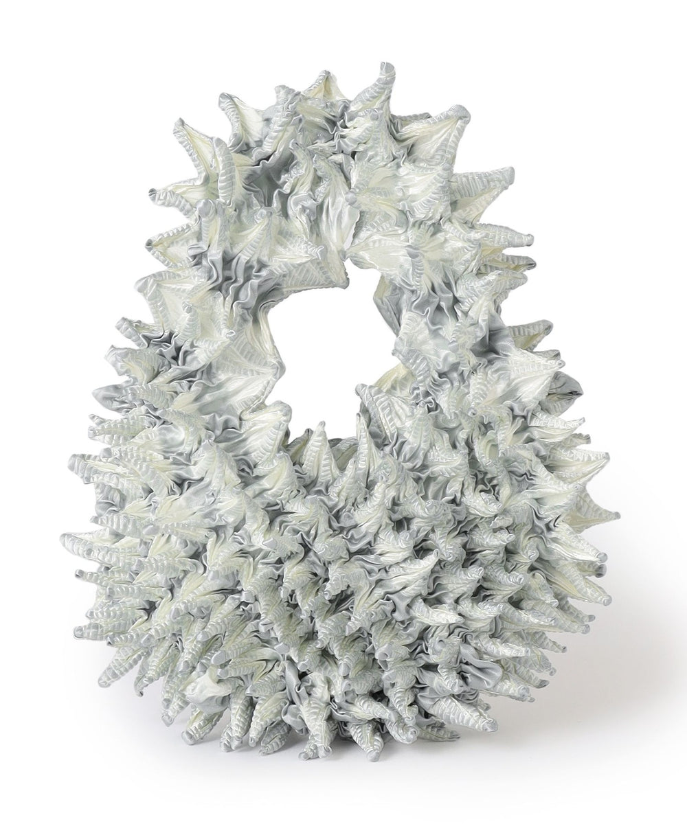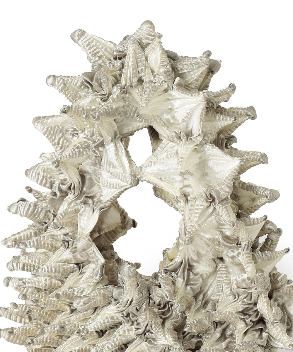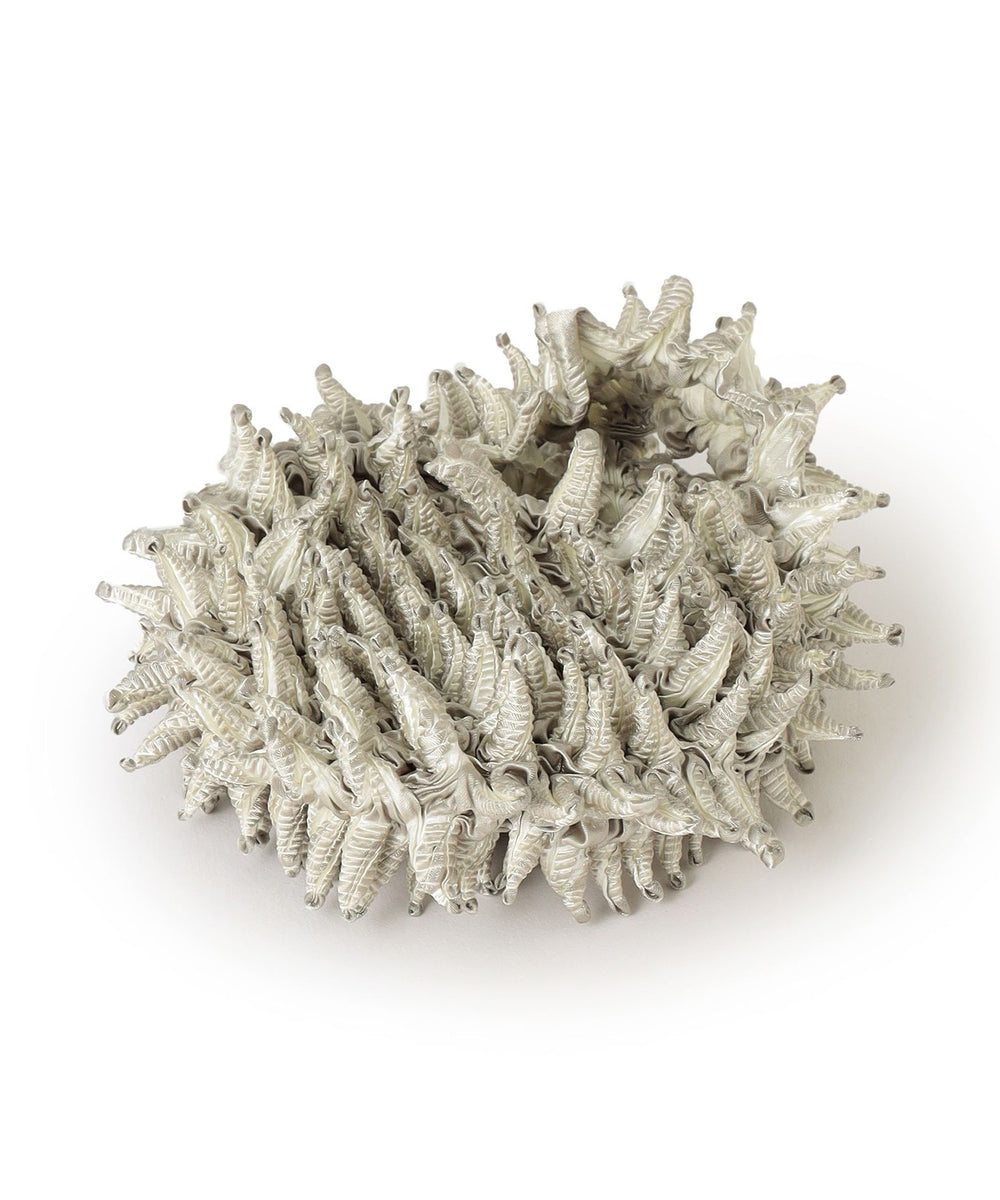 この伝統の絞り加工は一部機械を利用しつつも一つ一つ手作業で巻きあげ、熱加工をし、また手作業で解いていくという工程を経ています。