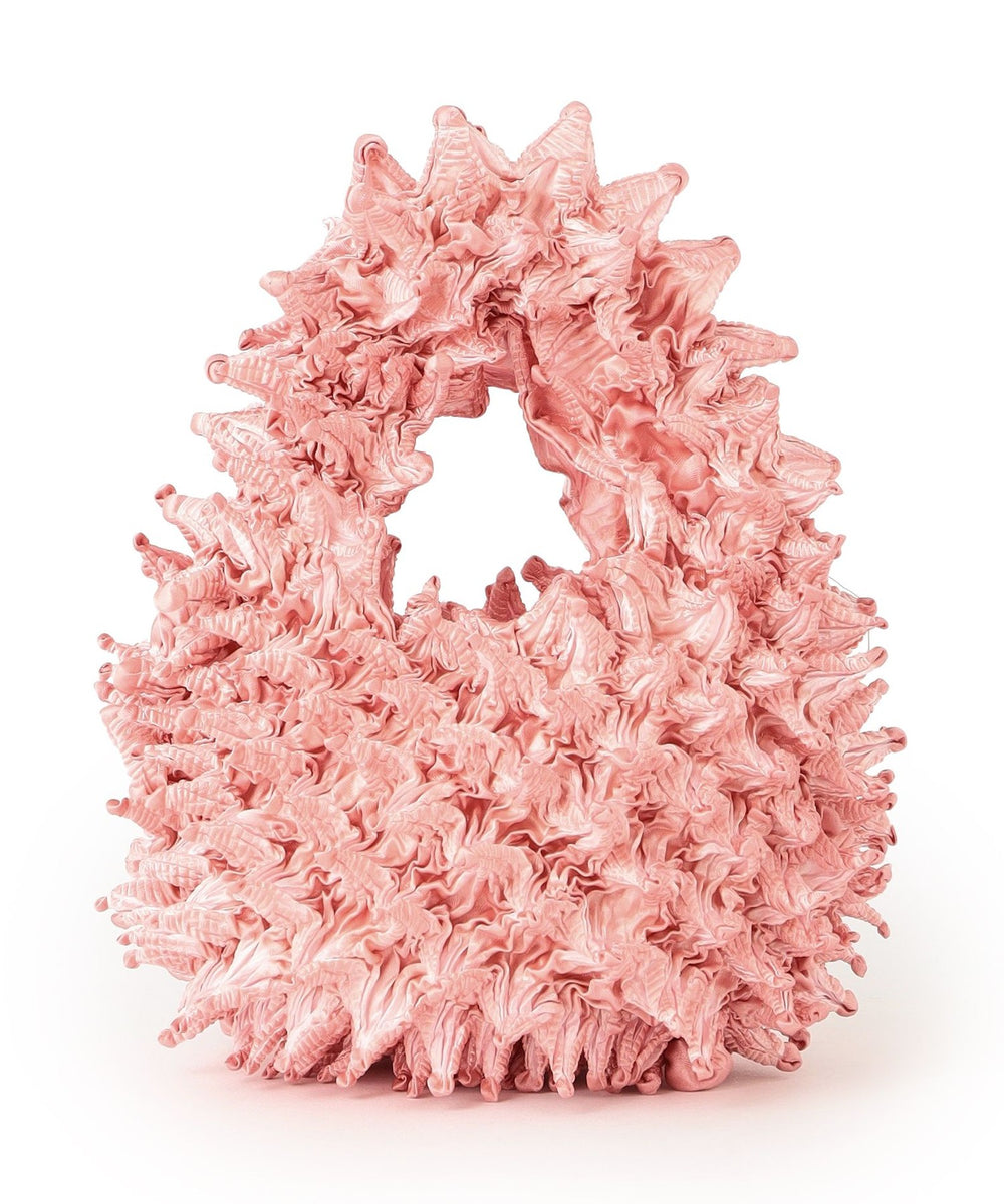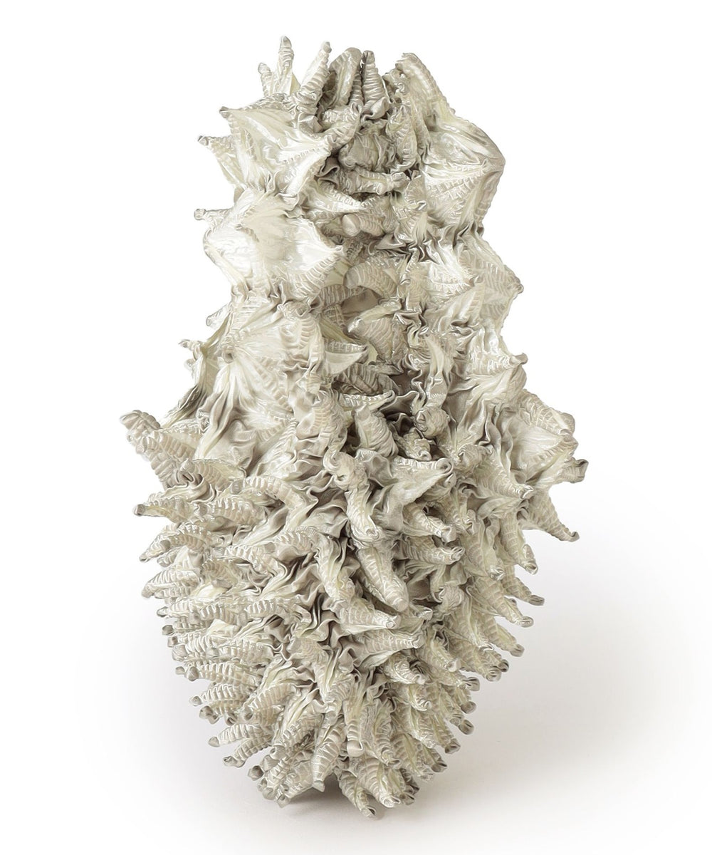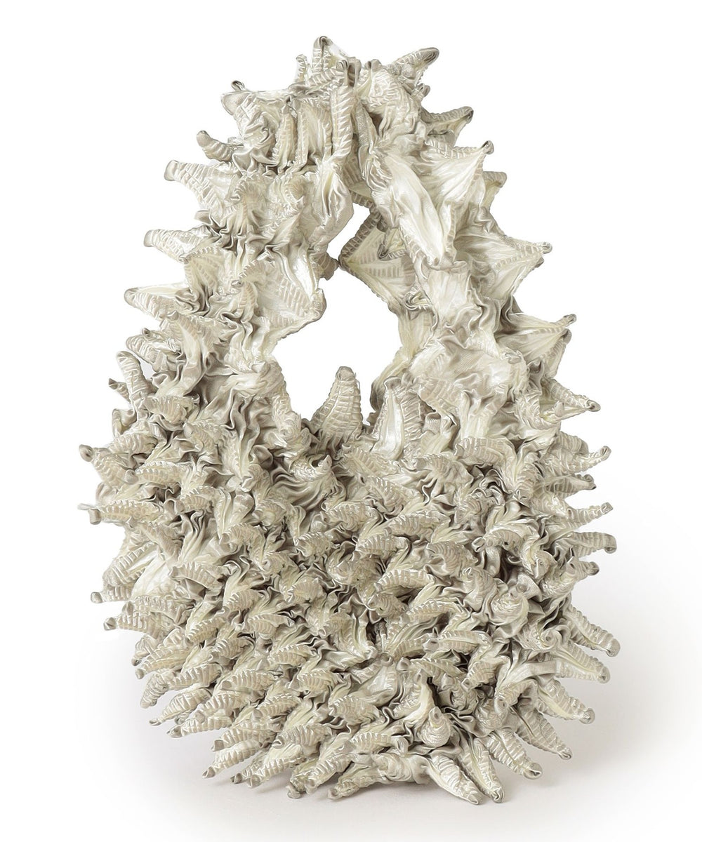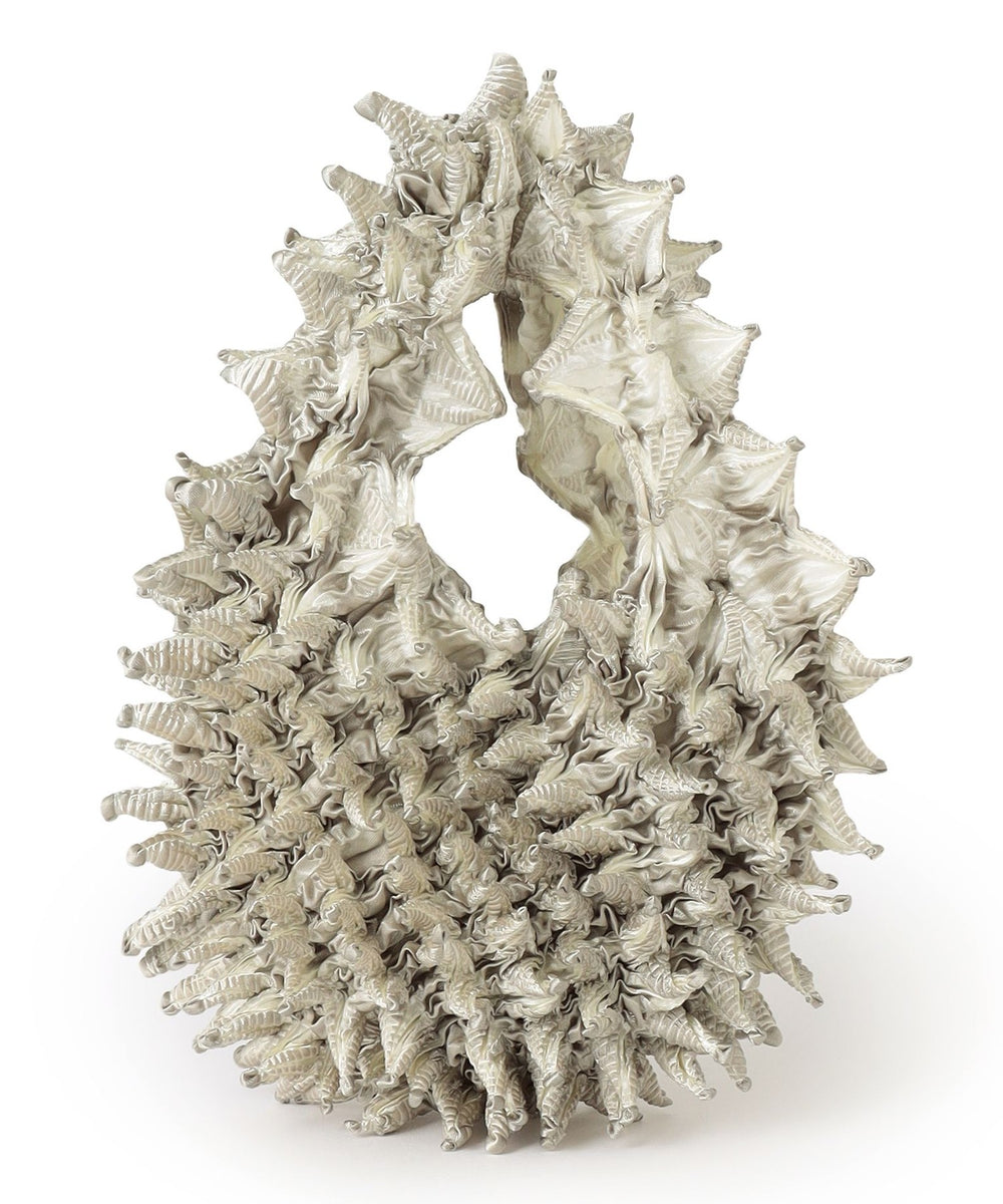 この伝統の絞り加工は一部機械を利用しつつも一つ一つ手作業で巻きあげ、熱加工をし、また手作業で解いていくという工程を経ています。