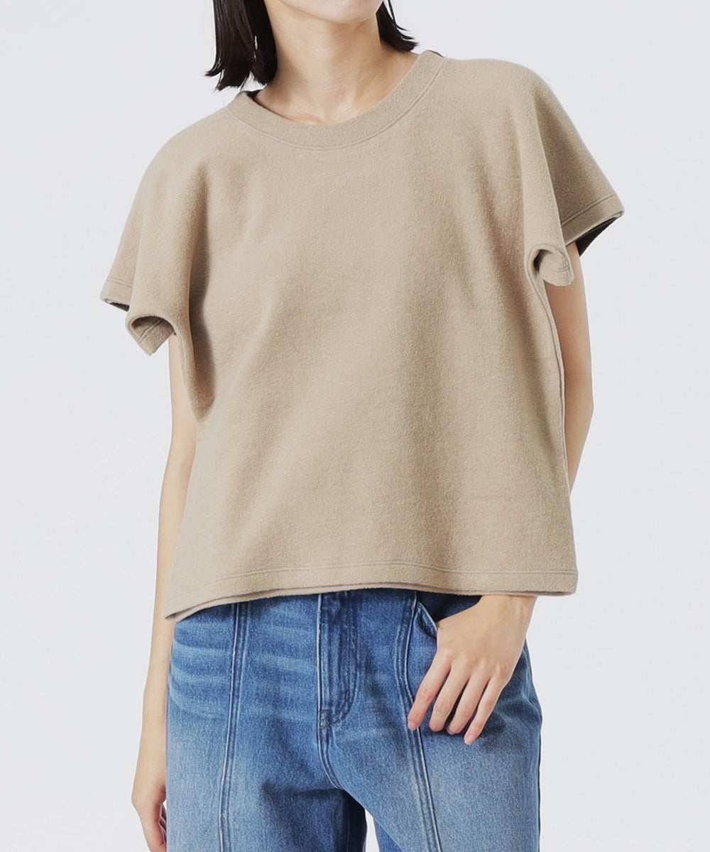 生地は尾州のウールパイルに変更することで、秋口から春まで使える半袖ニットにした。