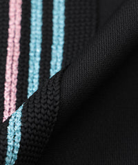 ブラックをベースに、サイドラインのカラーリングはLOVELESS青山店の中にあるピンクのスペース、ブルーのスペースをイメージし、さらに艶感をイメージしたラメ糸を使うことで夏の清涼感を出してみました。