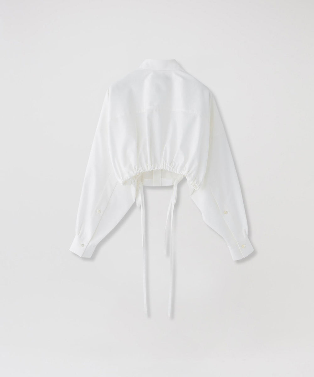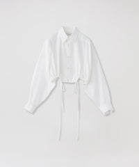 共布テープで裾にギャザーを寄せたクロップド丈シャツです。