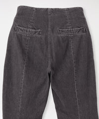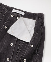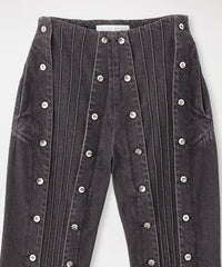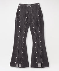 過去のストマッカーデザインディテールから展開した、フレアシルエットのデニムパンツ。