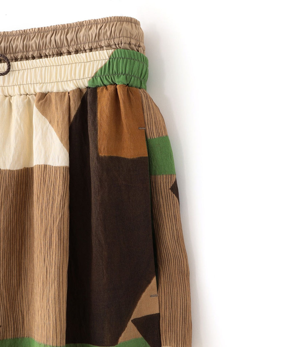 色ムラがナチュラルな風合いの幾何学柄のパンツ