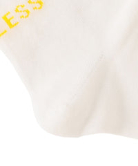 白には青山店の象徴である階段をイメージした黄色、黒にはLOVELESSのストアカラーであるグレーで表現し、ローカットの靴を履くとちょうど見える位置に配しました。