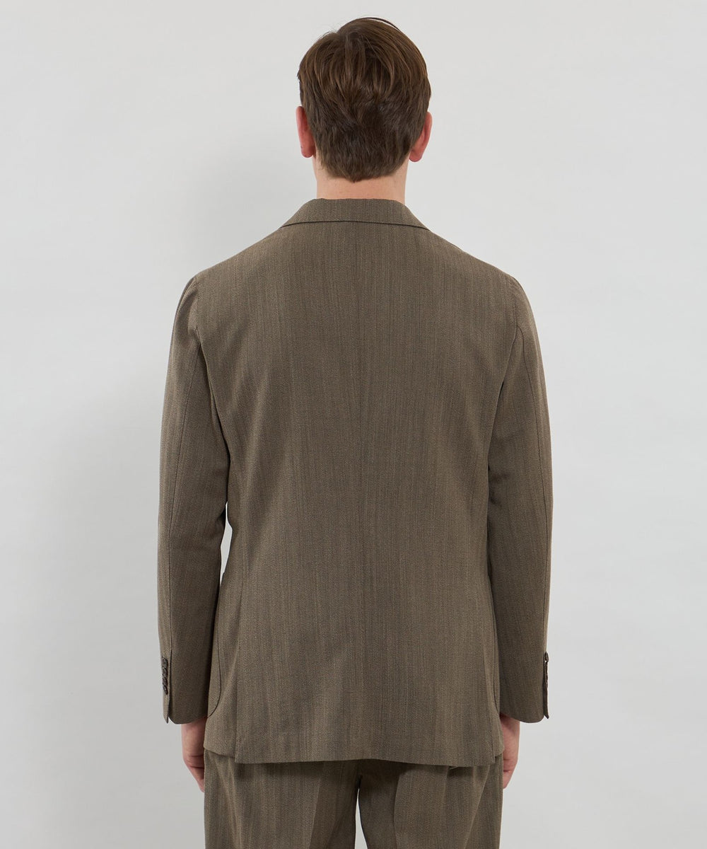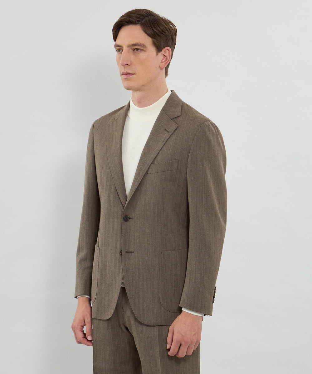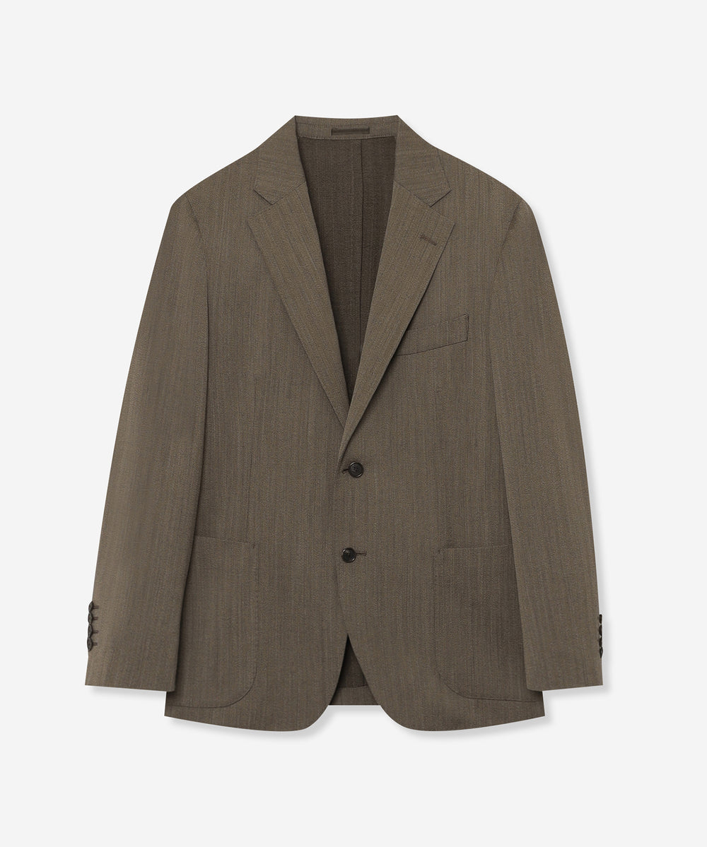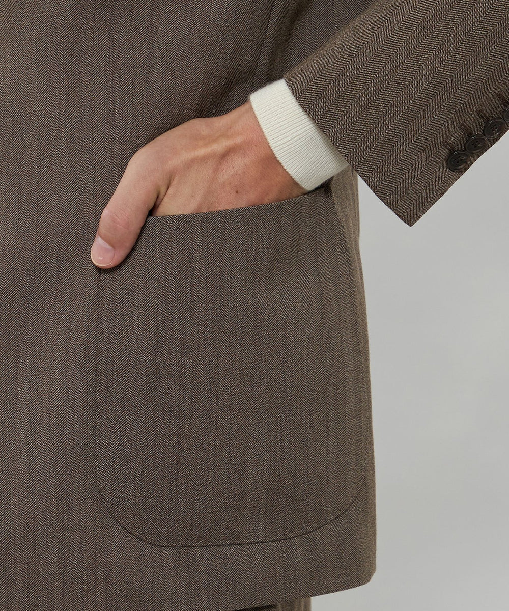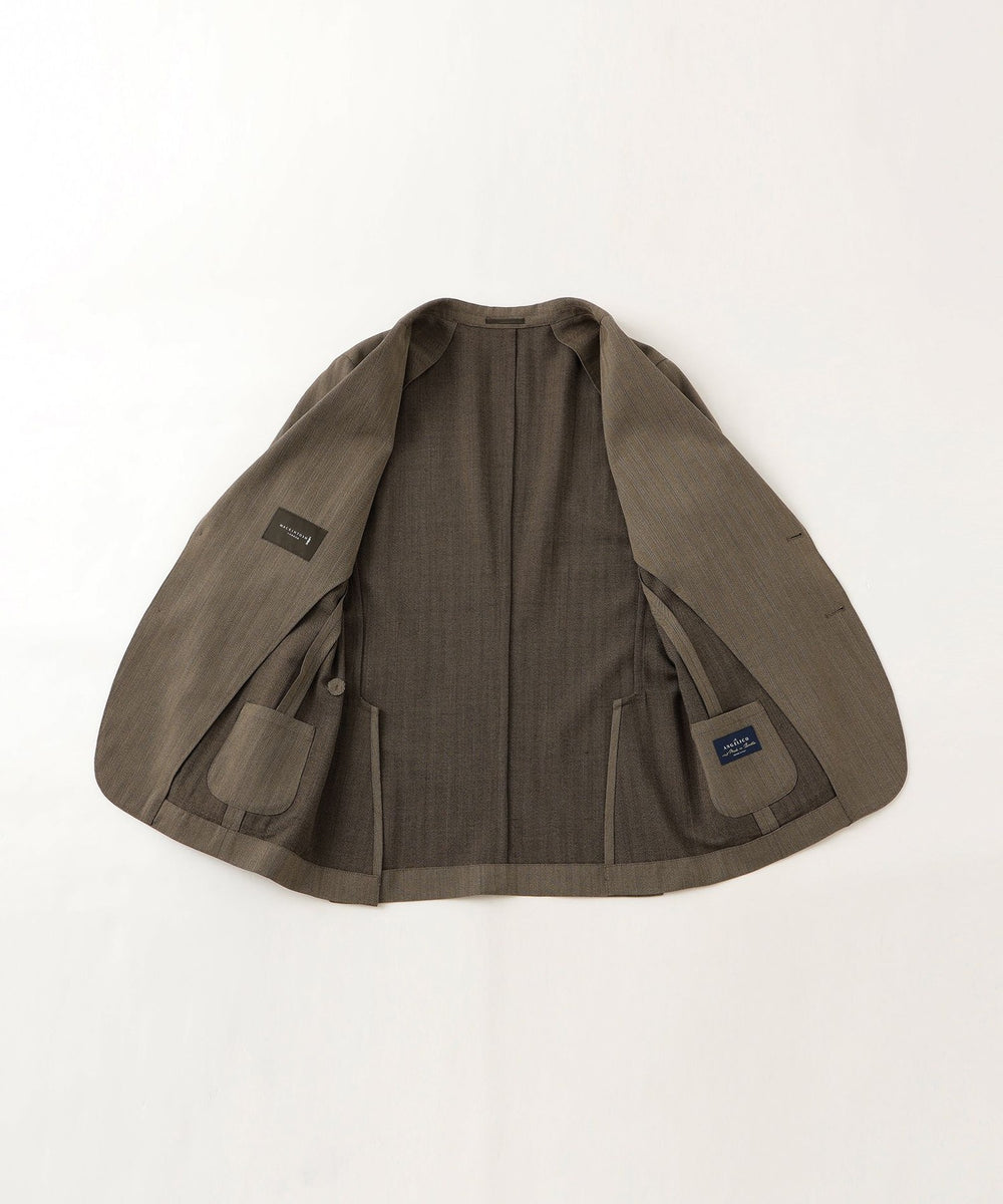 自然なラペルの返りやバルカポケット、腰のパッチポケット等、抜け感のあるディテールと軽い着心地が特徴です。
