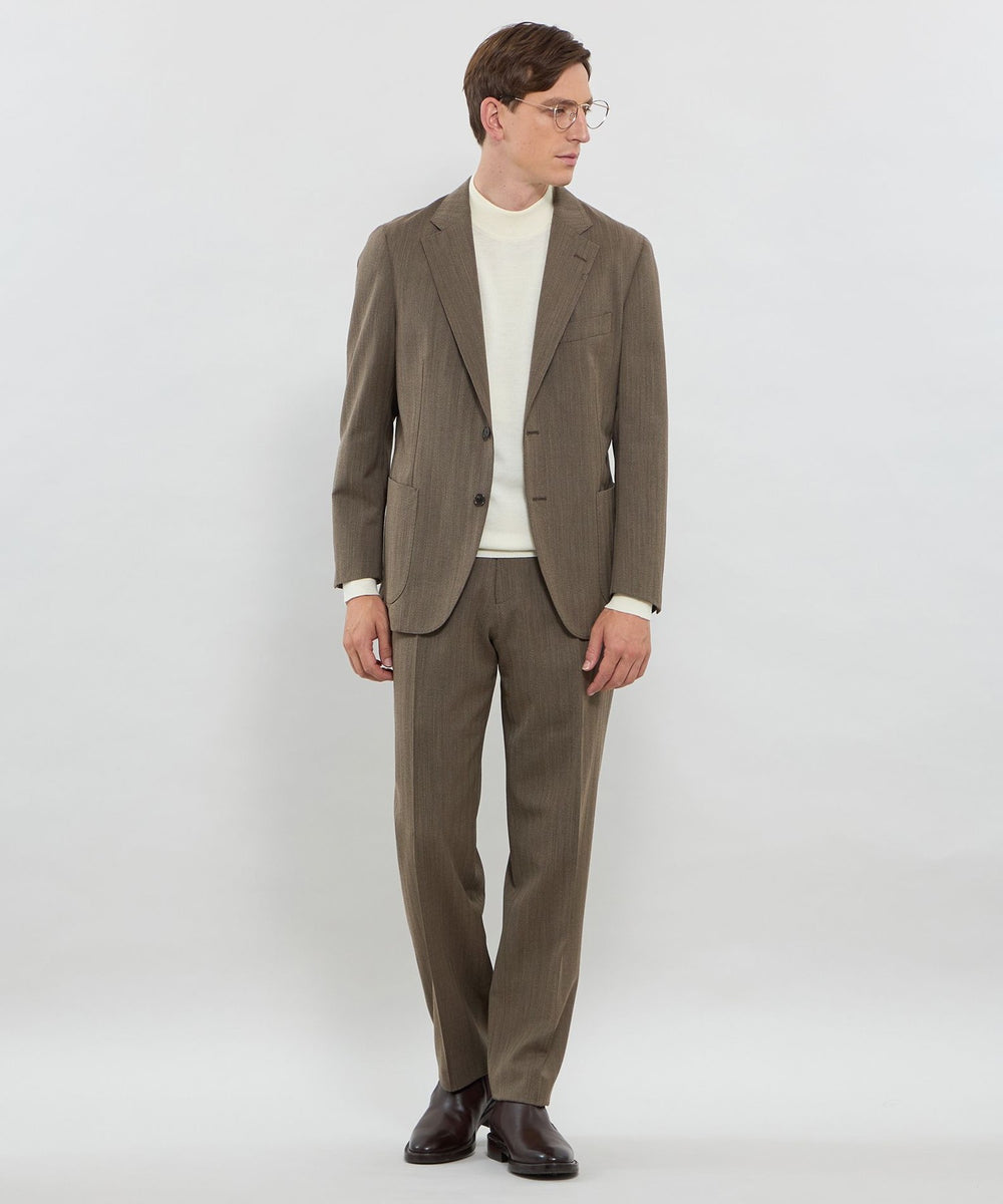 1955年、ビエラで創業のANGELICOは、滑らかで繊細、美しい発色、というイタリアンメーカーならではの持ち味に加え、強いハリとコシを持った素材作りが特徴です。世界中のテーラーからカジュアルブランドまで、巾広い顧客に選ばれ続ける名門です。落ち着いた色合いのへリンボーンは、タテ、ヨコで糸色を変えたソラーロです。