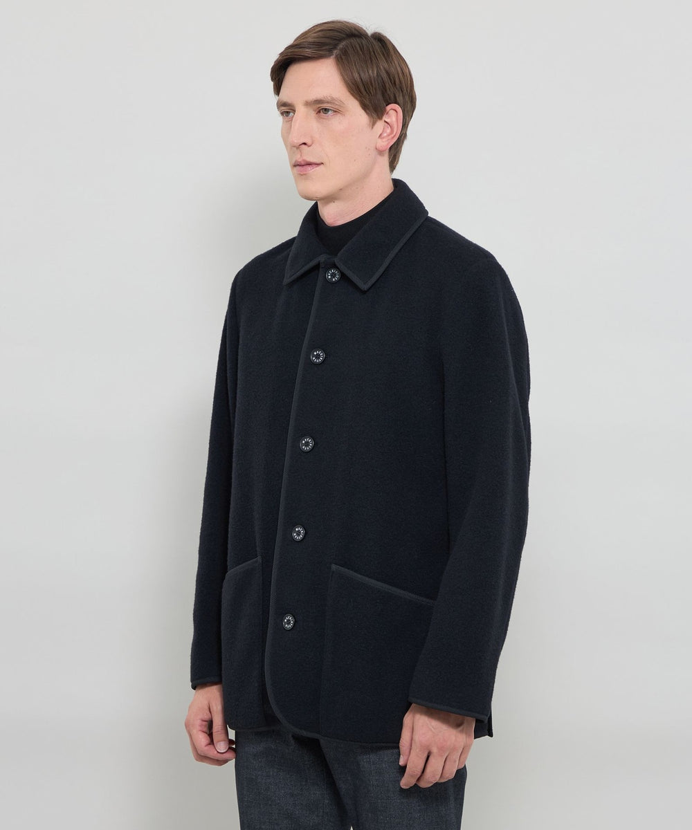 リサイクルウールを使用したジャージー素材を採用。マッキントッシュ ロンドンオリジナルのTOPカラーを別注で染色しています。見た目はウールらしい上質な質感ながら、軽量で、ジャージー素材ならではの優れた伸縮性により、快適な着心地を実現しています。