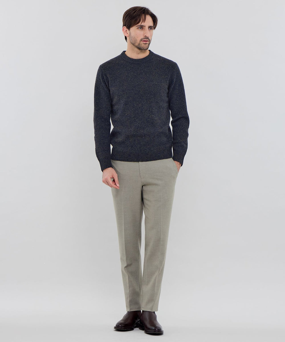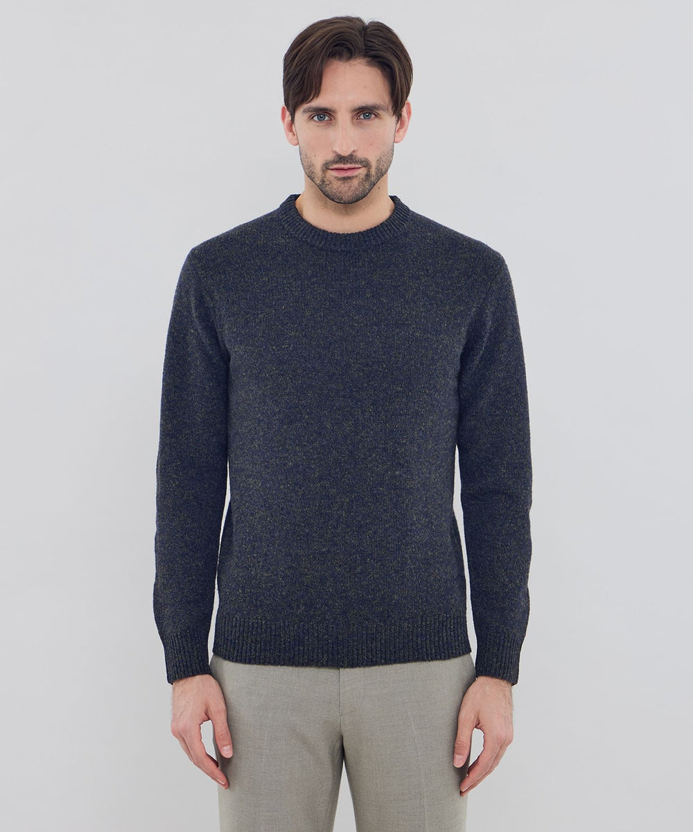 定番のレギュラーフィットのクルーネック長袖プルオーバーニットです。