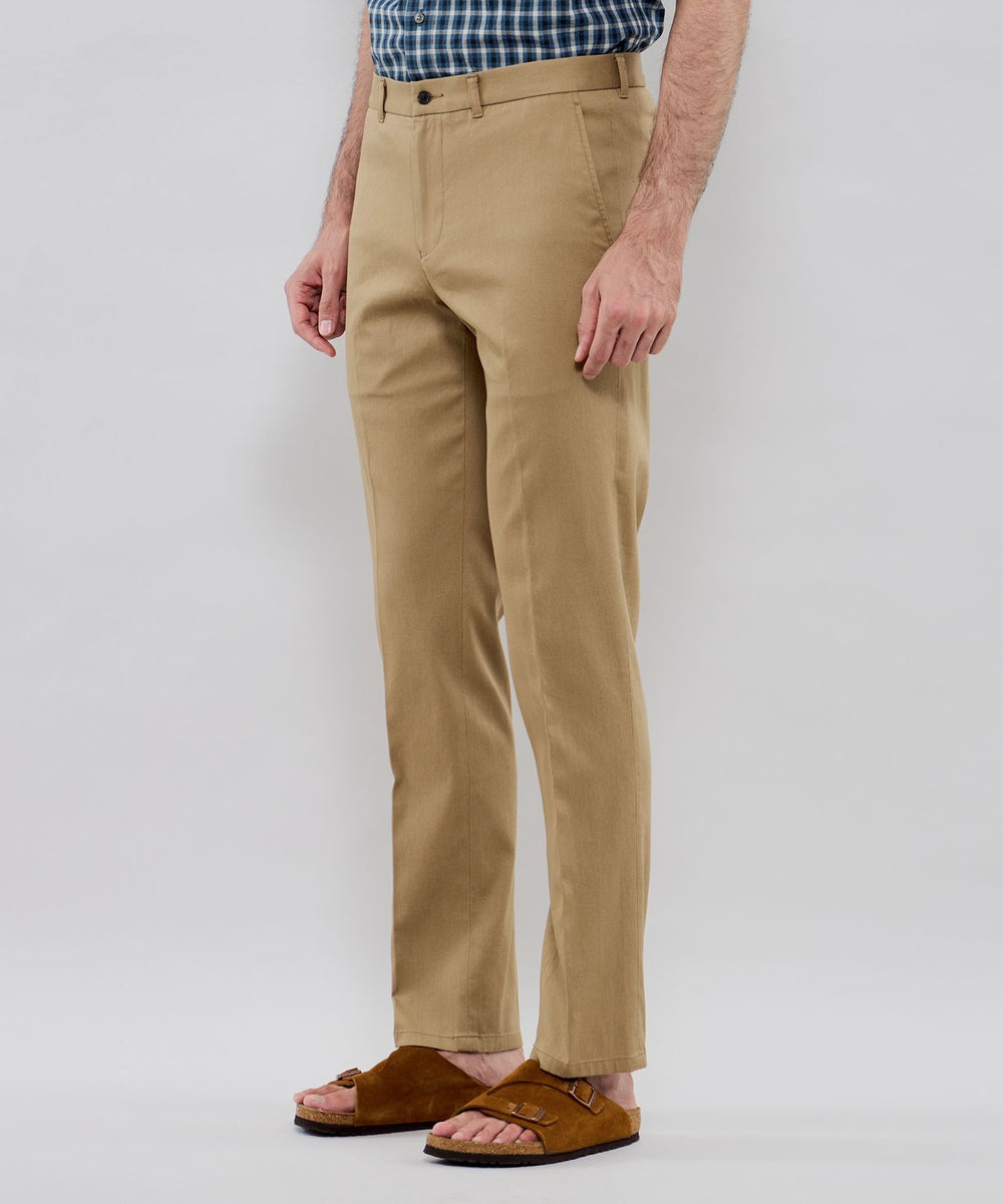 ジーンズと並び立つカジュアルトラウザースの代表『チノーズ』をスリムテーパードシルエットに仕立てました。適度なストレッチ性と相まって、スマートなコーディネイトを楽しめます。