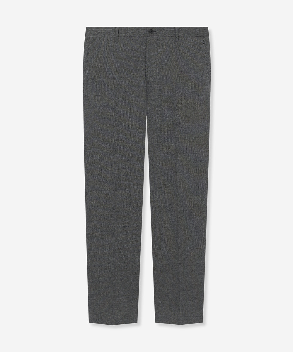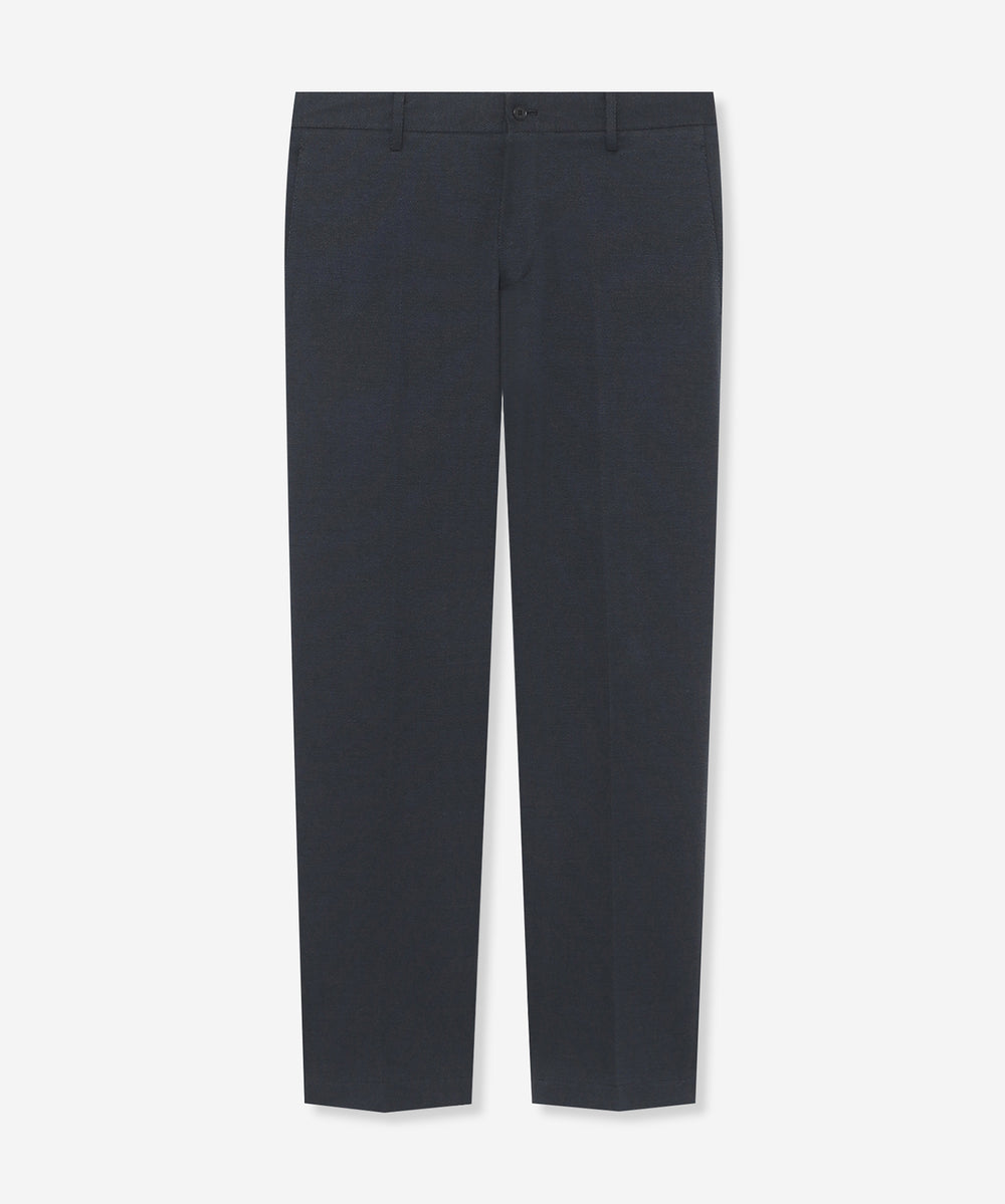 強撚糸を使用したシングル編みで軽さと清涼感を保ちつつ、特殊加工をすることにより、布帛のような張り感を表現して仕立て映えのする素材です。スーピマ原料の綿糸と長短交撚の特殊紡績を施したポリエステル糸を使用し、杢調の色目を表現しています。防皺性、ストレッチ、消臭性(消臭テープ使用)、家庭洗濯可能と盛夏商材に最適な機能性を盛り混んでいます。