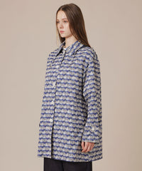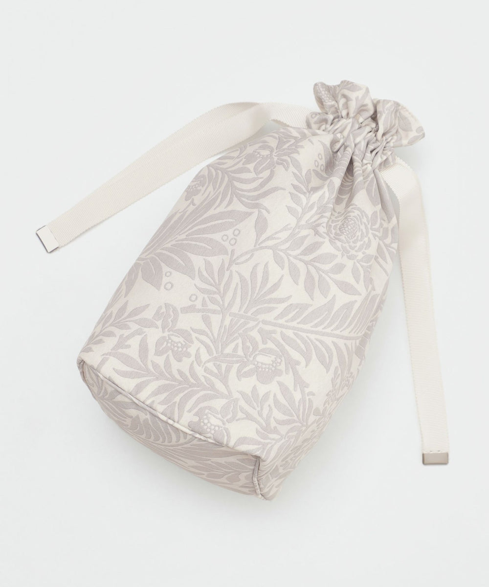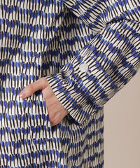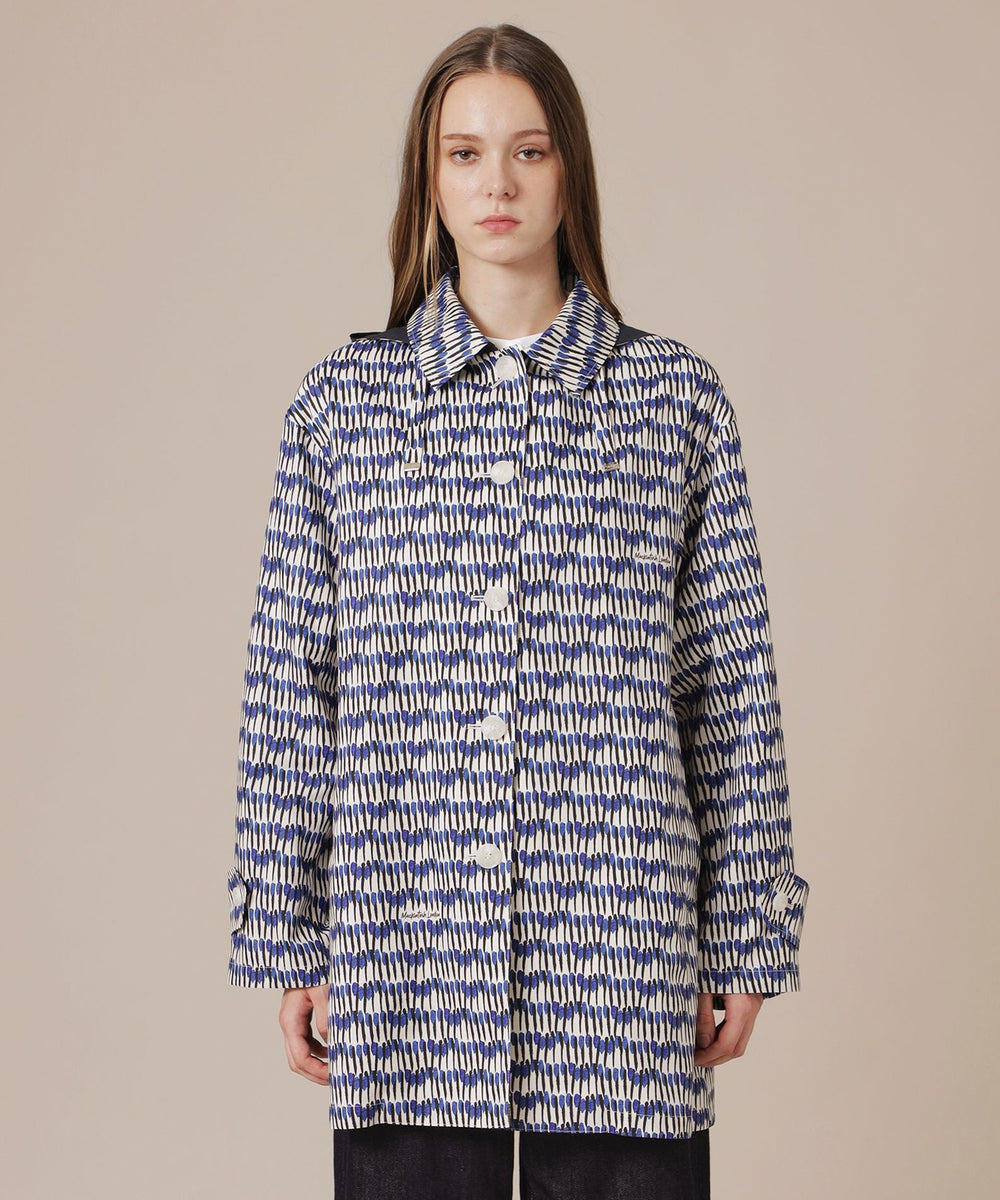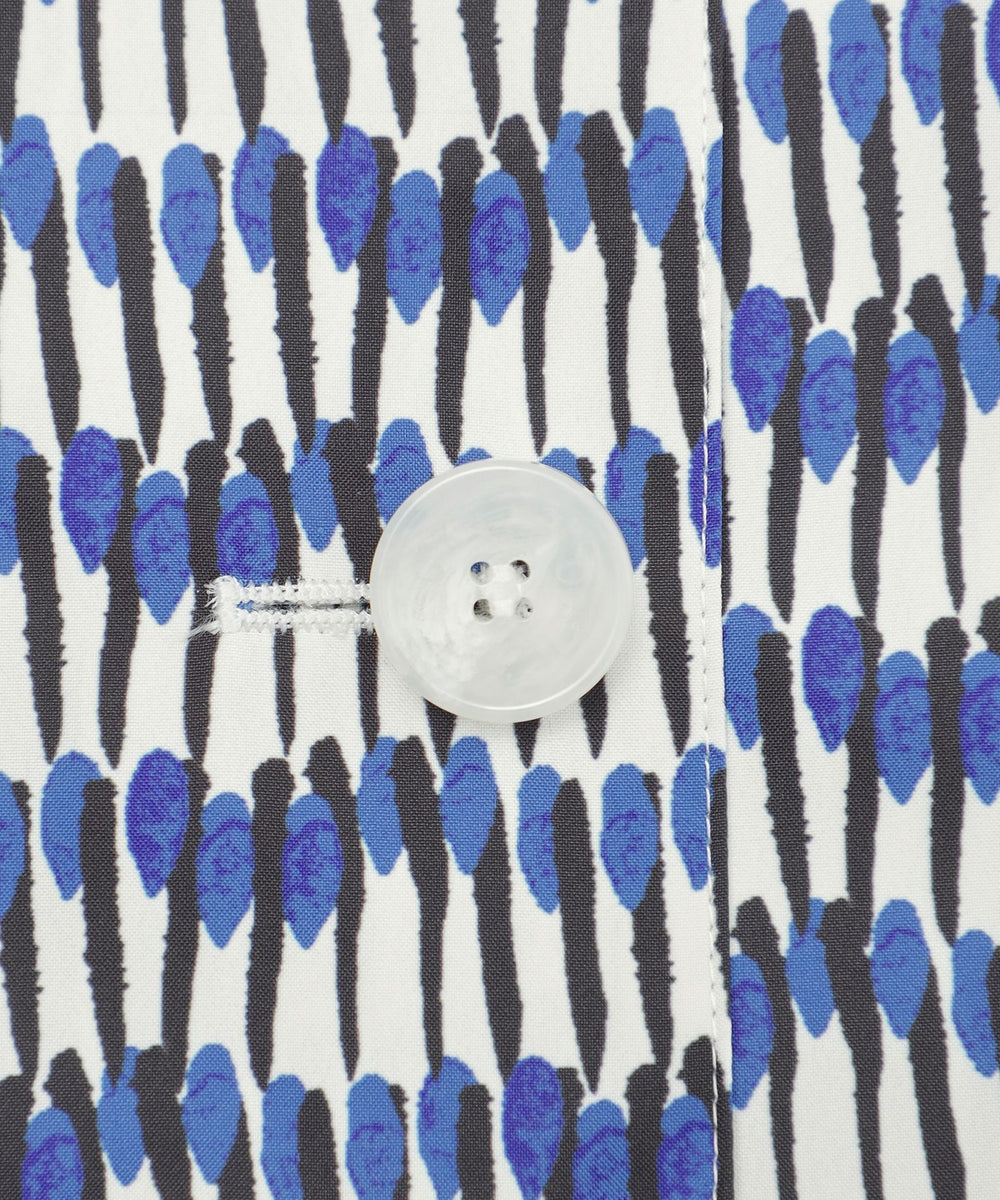 ソフトな風合いとドレープ性が特徴のポリエステルタフタに、ブランドオリジナルプリントを施した素材です。ブルー系(#25)はオリジナルの水滴をモダンにアレンジした「レインドロップ柄」、ベージュ系(#40)は爽やかな「リーフ柄」を繊細にプリントしています。