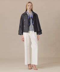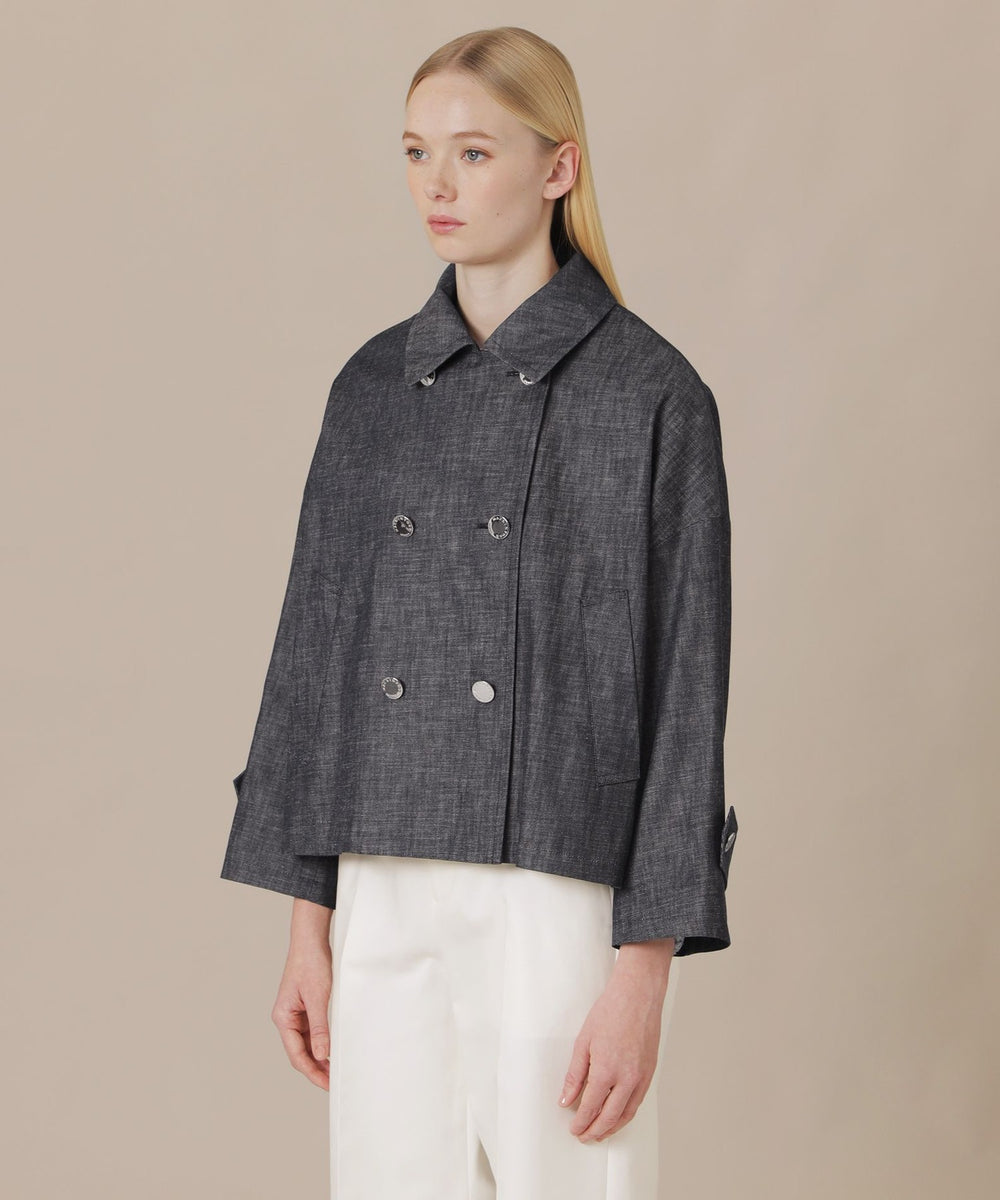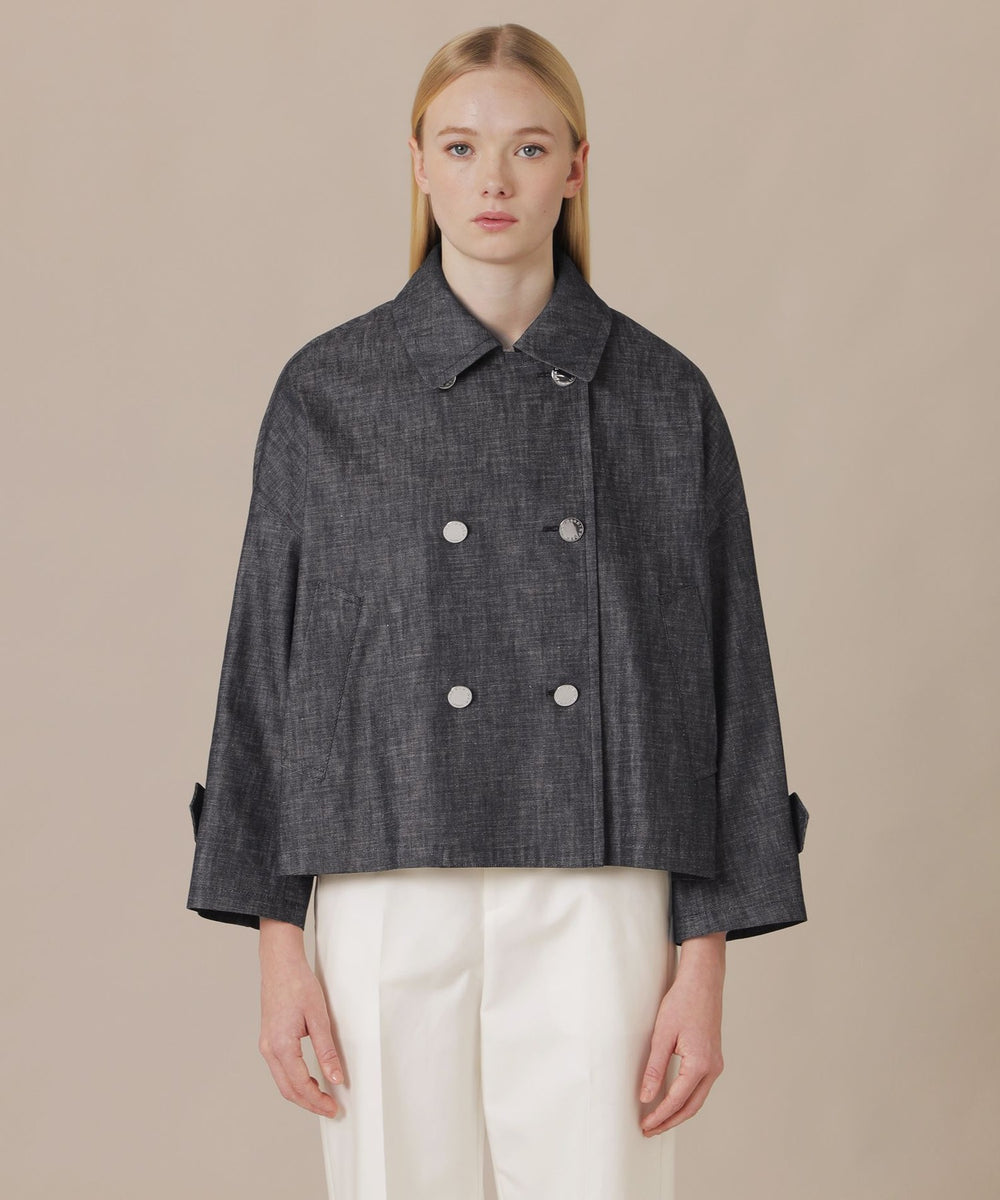 MACKINTOSH LONDONのコートのモデル「Fyvie/フィビー」です。ダブルブレストのデザインにAラインに裾に向けて広がるシルエット、ドロップショルダーでこなれ感のあるコートに仕上げました。身長やスタイリングを選ばないショート丈で、幅広いシーンで活躍するアイテムです。総裏地付きです。同素材のコート(品番:G5A88711)もご用意しております。