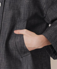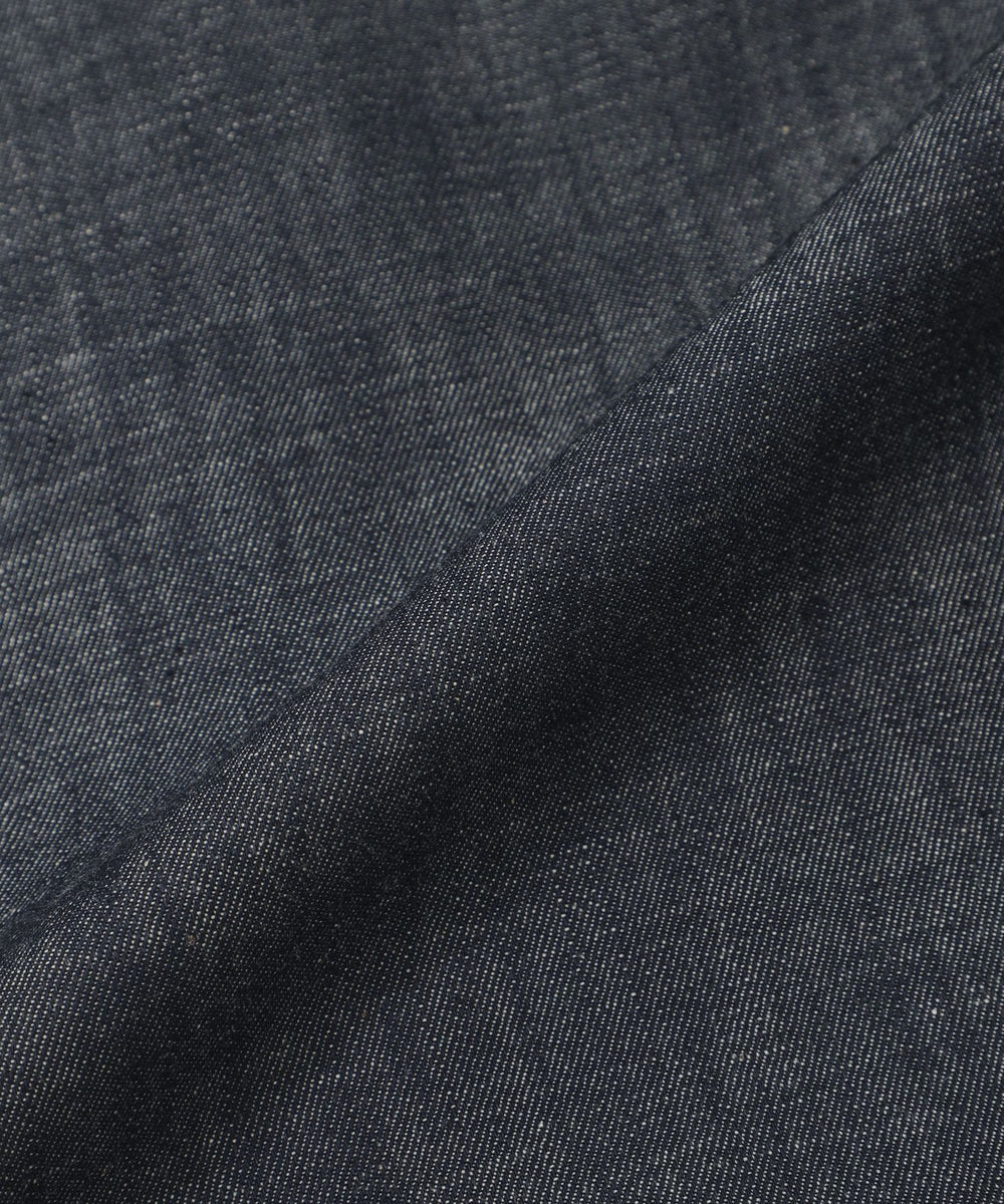 広島のデニム産地福山に伝わる伝統的な織り方で織り上げたデニムです。反応染めにより色落ちを軽減し、生デニムのような色味をお楽しみいただける素材です。