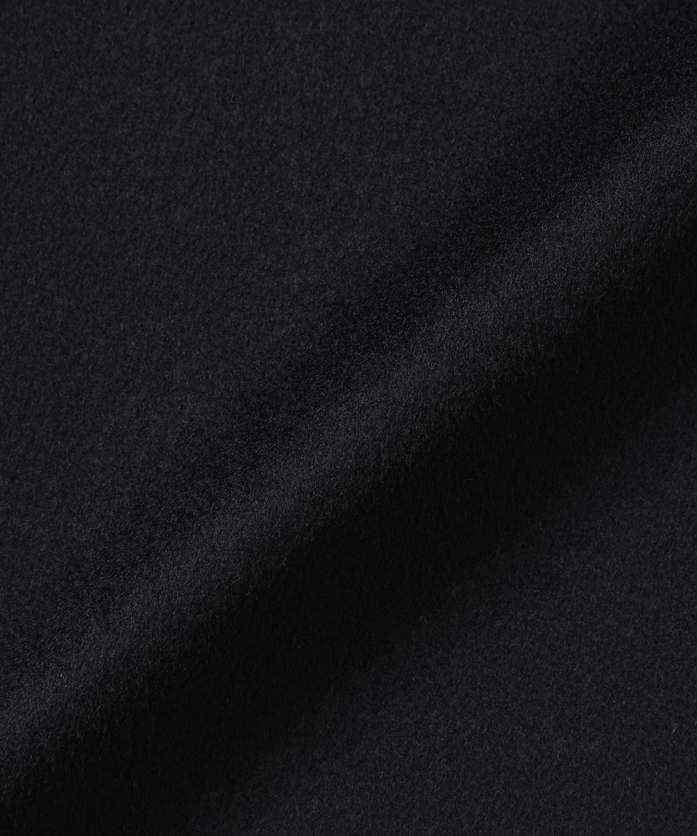 イタリアCOLOMBO社の素材を使用しています。細番手の糸を使用した二重織生地に、表面裏面共に時間をかけて起毛を施し、しなやかで柔らかく軽い着心地に仕上げています。膨らみのあるあたたかさが特徴です。クロ(#09)裏面ネイビーです。
