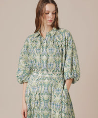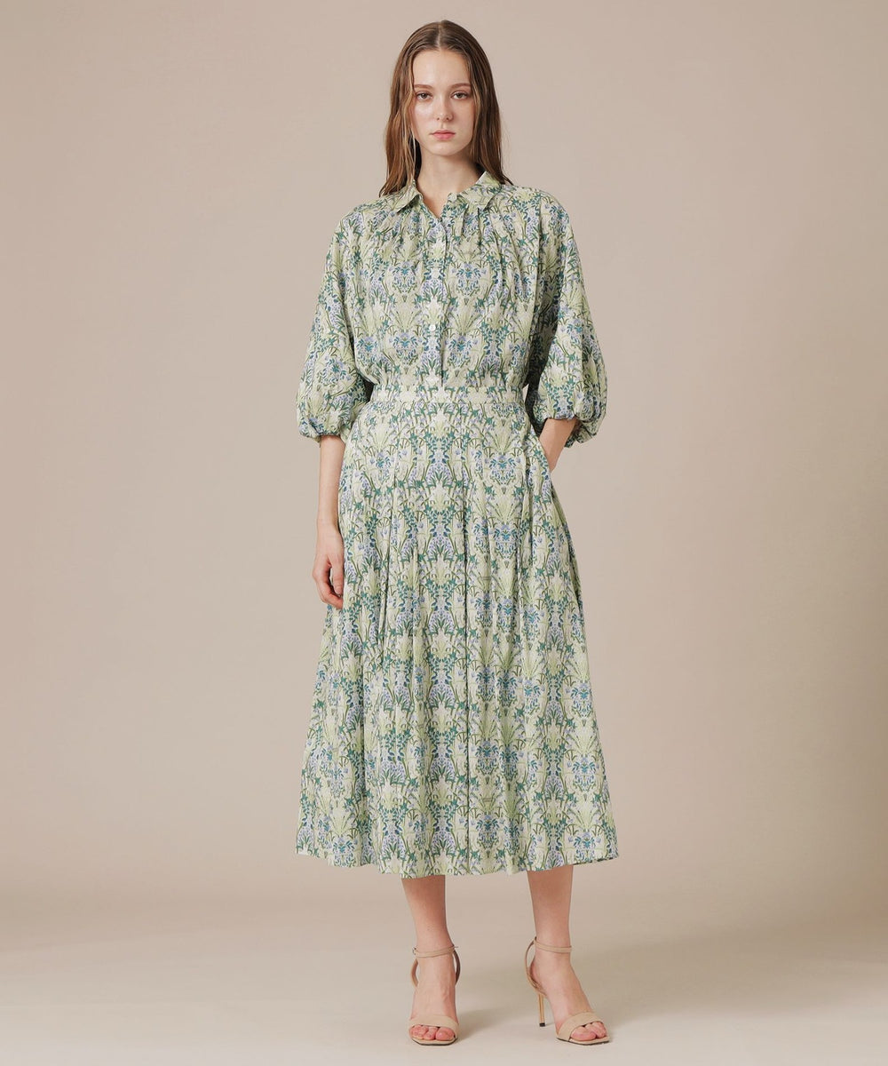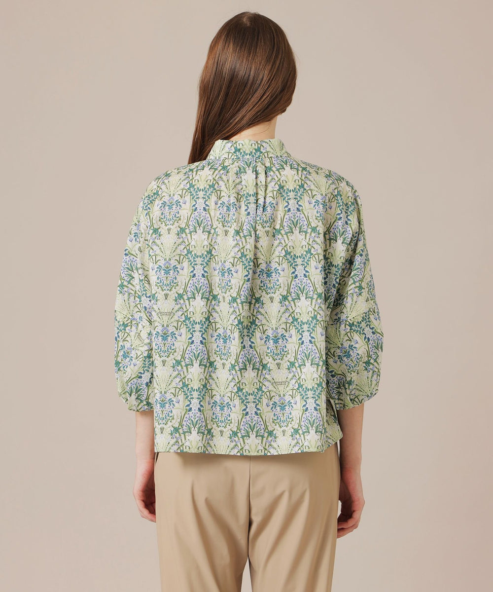 細番手の糸を使用した薄くて軽やかなローン素材です。上品な透け感と滑らかな肌触りが特徴で、柔らかさの中に程よいハリ感を備えています。プリントはロンドンの老舗デザインスタジオの伝統的な柄を元にモダンにアレンジした柄です。