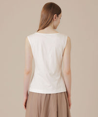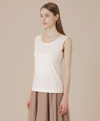 滑らかな肌触りの素材感を十分に感じていただけるタンクトップです。シャツなどに合わせやすい様、少し横に衿の開きを出し、シャツなどの第一釦を外した際に胸元が綺麗に収まる様に丁寧に作り上げたアイテムです。同素材のTシャツ(品番:G5P05665)、ワンピース(品番:G5J01665)もご用意しております。