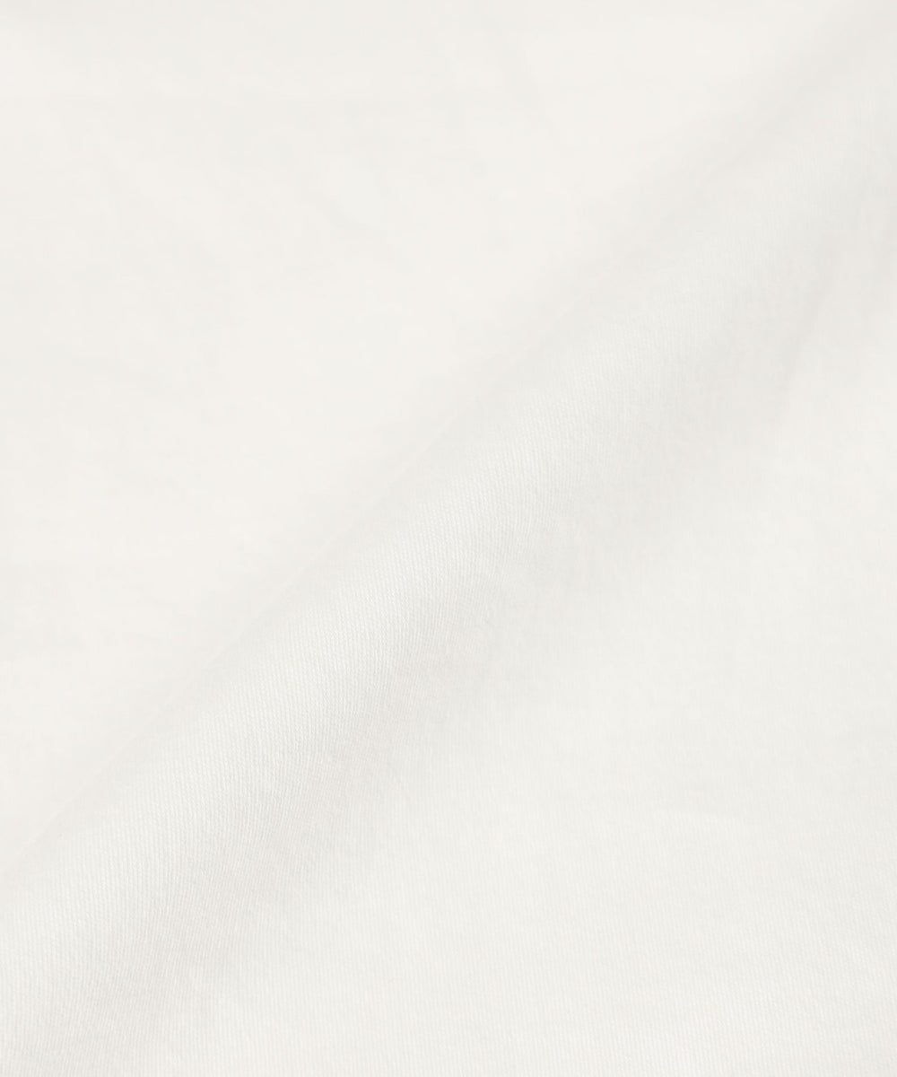 SUPER FINE LAB.の001は、パウダーシュガーコットン。極細スーぺリアルピマコットンを通常の倍以上の時間をかけてゆっくりと編み立てました。その生地を膨潤させ、世界に一台しかない特別な機械を使って微起毛の加工を施すことで、まるでパウダーシュガーのような、きめ細かく滑らかでしっとりとした風合いのコットンが日本の工場で誕生しました。