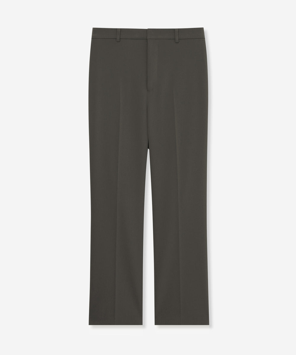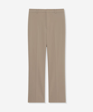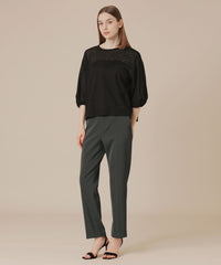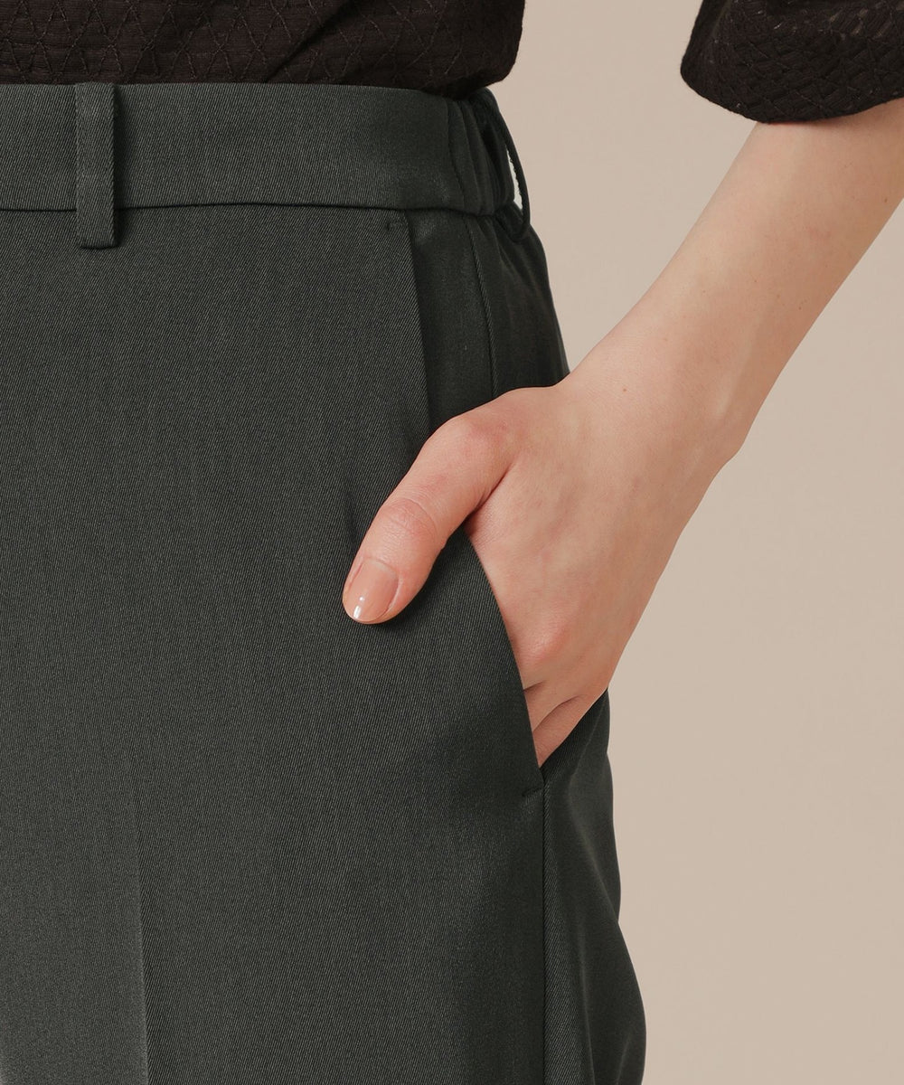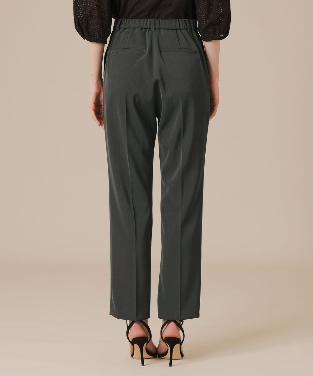 腰回りがスッキリとしたクリーンな印象のクロップド丈テーパードパンツです。コーディネートの汎用性が高くスタイリングに活躍するアイテムです。裏地なしです。